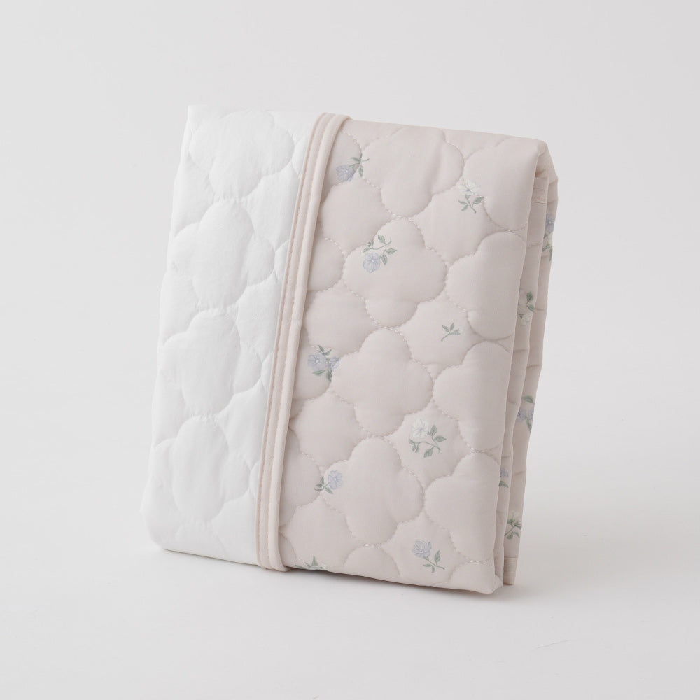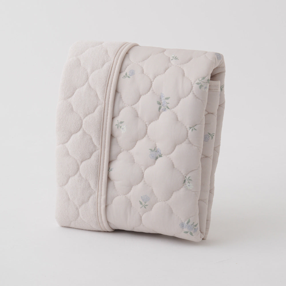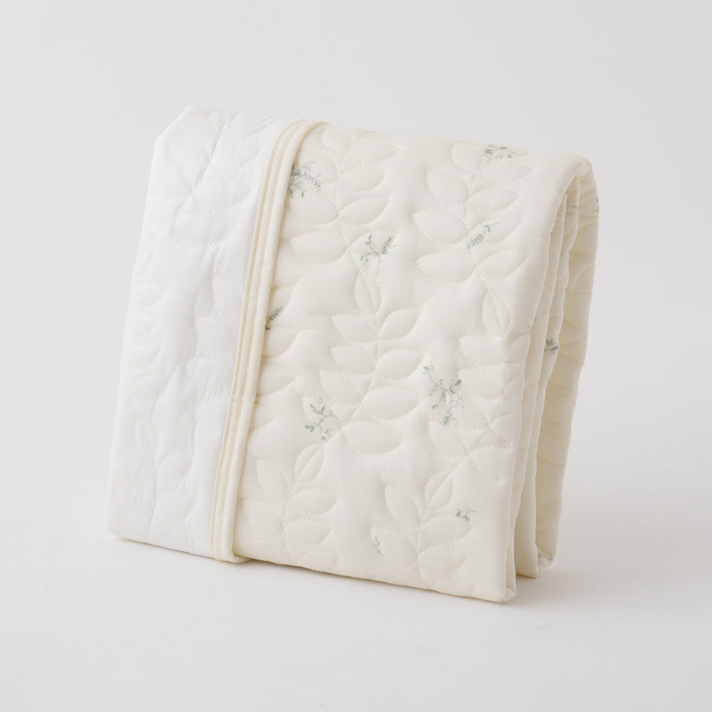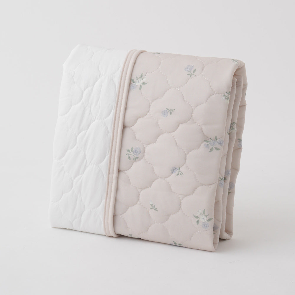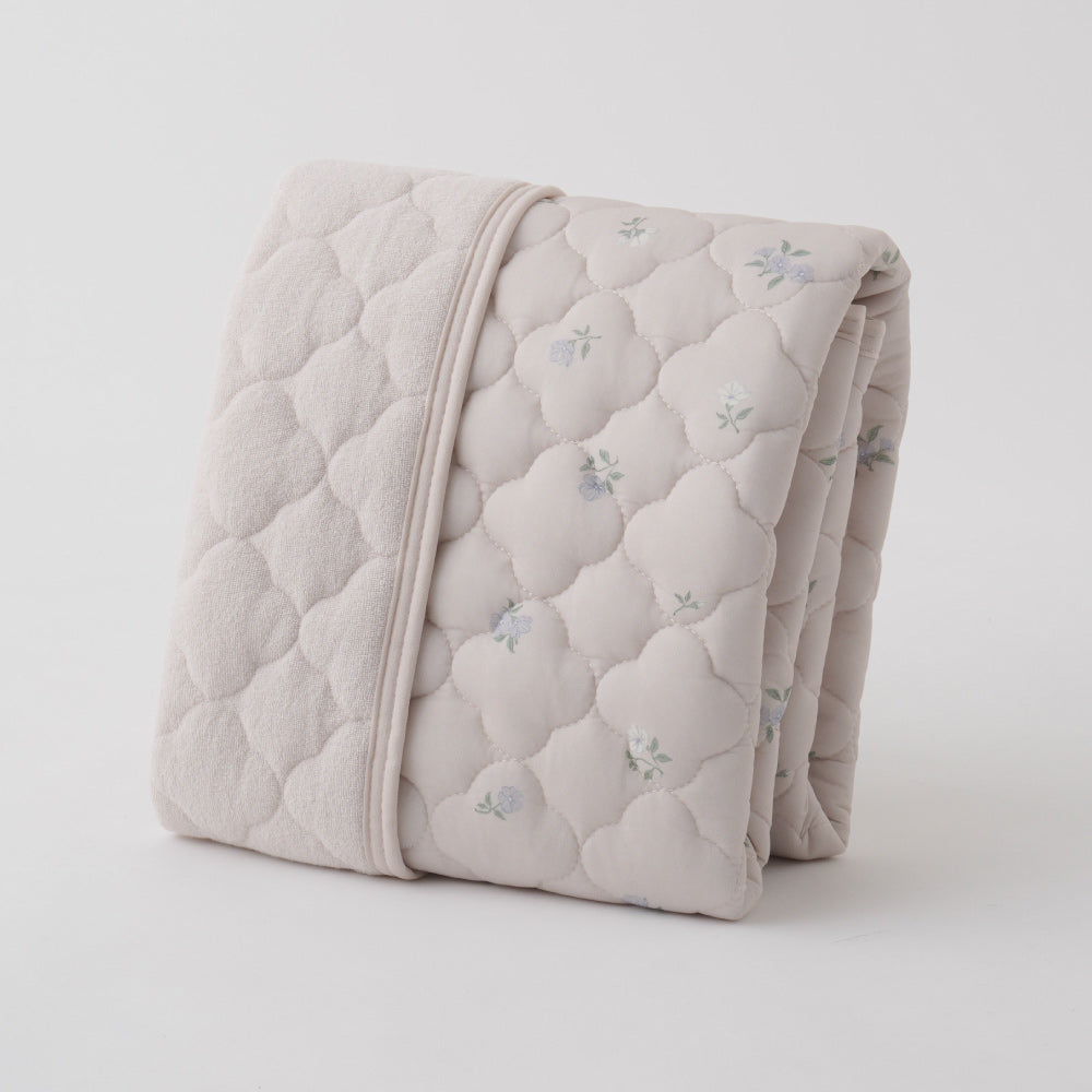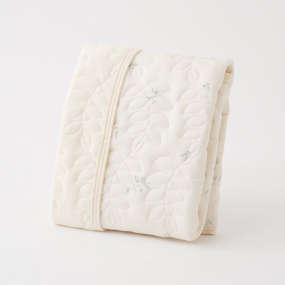 裏面は肌ざわり、吸水性、通気性のいい綿100%のパイル生地を、もう表面はひんやり気持ちいい接触冷感生地を使用。夏場はひんやり気持ちよくてシンプルな柄がかわいい接触冷感面を、春・秋・冬は肌ざわりのいい無地カラーのパイル面を。中綿入りのふんわりキルト仕様なので1年中使えるのが嬉しい敷きパッド。※パイル生地はパイル部分 綿100%、基布部分 ポリエステル100%になります。
