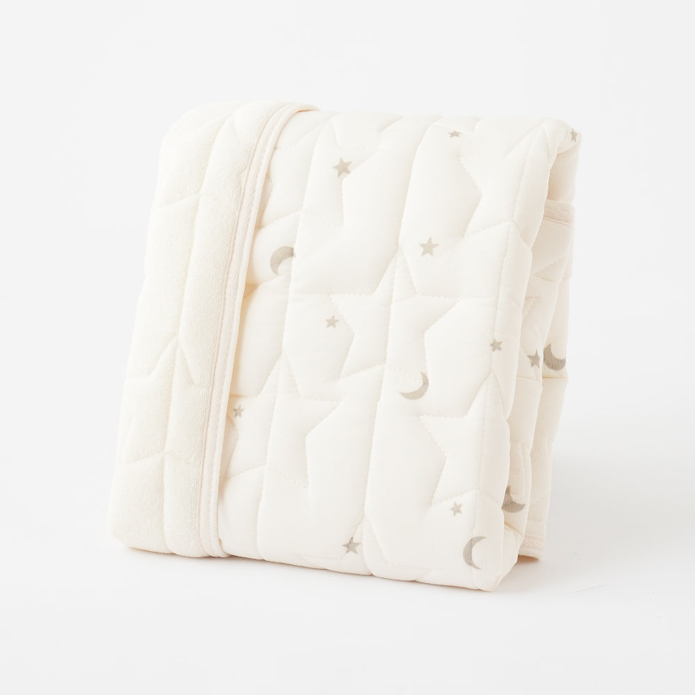 ふんわりやさしい肌ざわりのコットンパイル素材を採用。伸縮性もあって吸水性・通気性もある「パイル」は汗っかきのベビちゃんにはぴったりの素材です。吸水性検査をクリアしたパイル生地は、寝ている間に汗をよくかくお子さまのことを考え、綿素材にこだわりました。※パイル生地はパイル部分 綿100%、基布部分 ポリエステル100%になります。