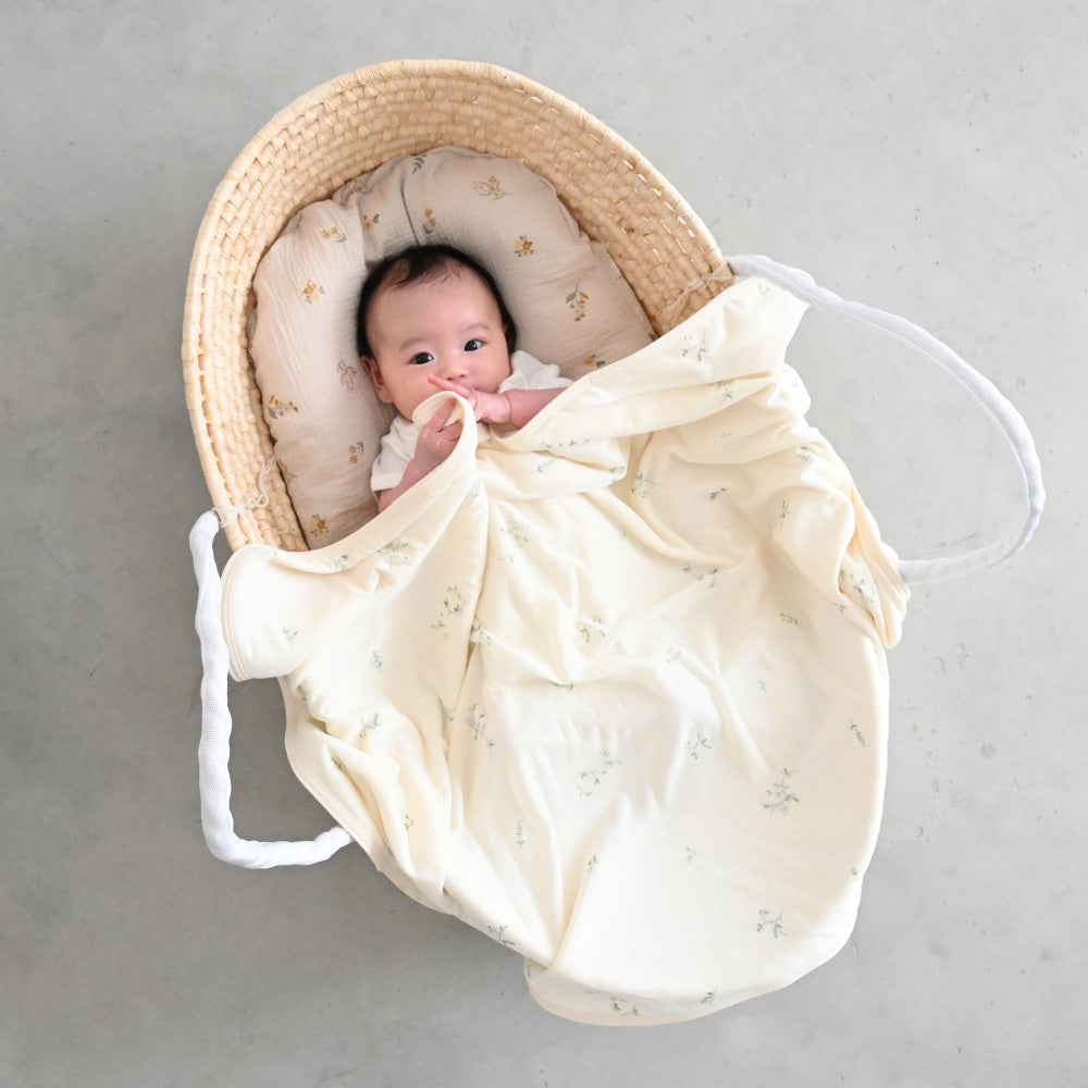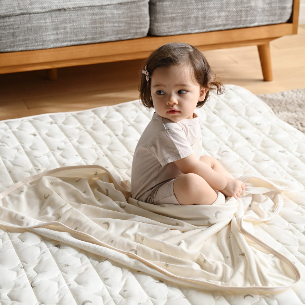 お部屋の中ではもちろん、シンプルなデザインと大きすぎないサイズ感でお出かけ先でのベビーカーやチャイルドシートなどのエアコンの直接の冷気対策や日よけ対策などに大活躍。ママやパパのひざ掛けとしてもご使用いただけます。