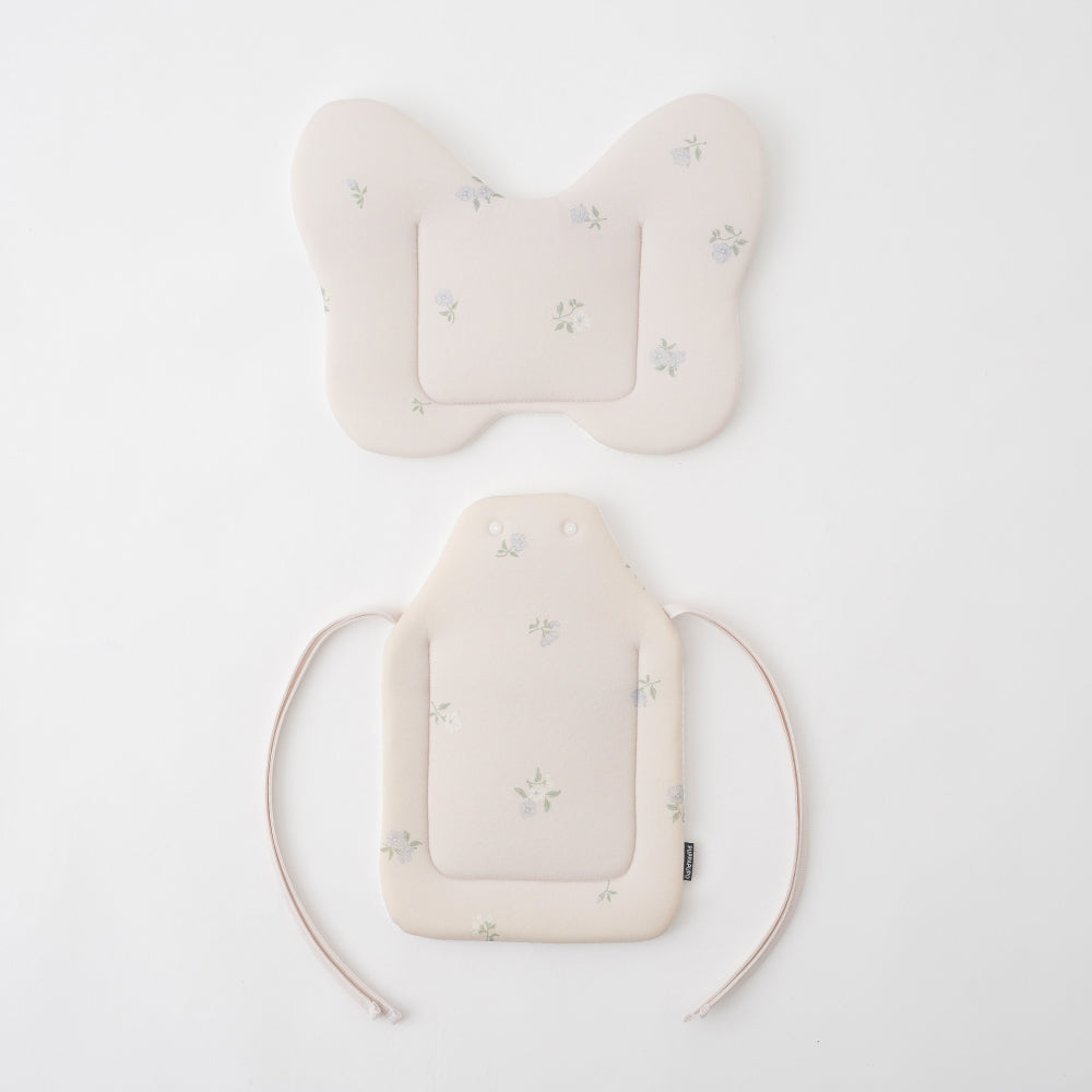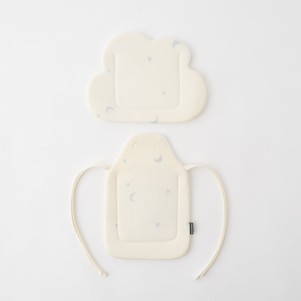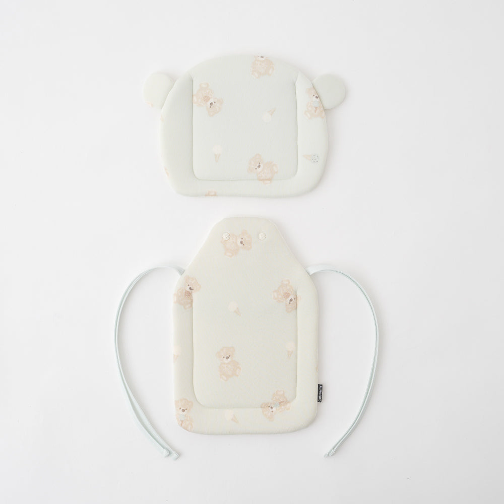 スター×ベージュ(クラウン):約27×53.5cm ボンテン含まず (ヘッドクッション約27×28cm 、シートクッション約20×30cm) スター×アイボリー(クラウド):約28×45.5cm (ヘッドクッション約28×21cm 、シートクッション約20×30cm) フラワー×ミルキーピンク(リボン):約32×45.5.cm (ヘッドクッション約32×24.5cm 、シートクッション約20×30cm) クマ×ミント(クマ):約29×45.5cm (ヘッドクッション約29×20cm 、シートクッション約20×30cm) 保冷ジェル:15.5×11.5cm