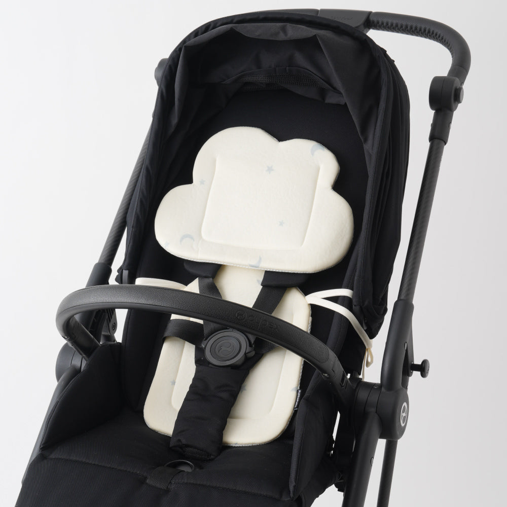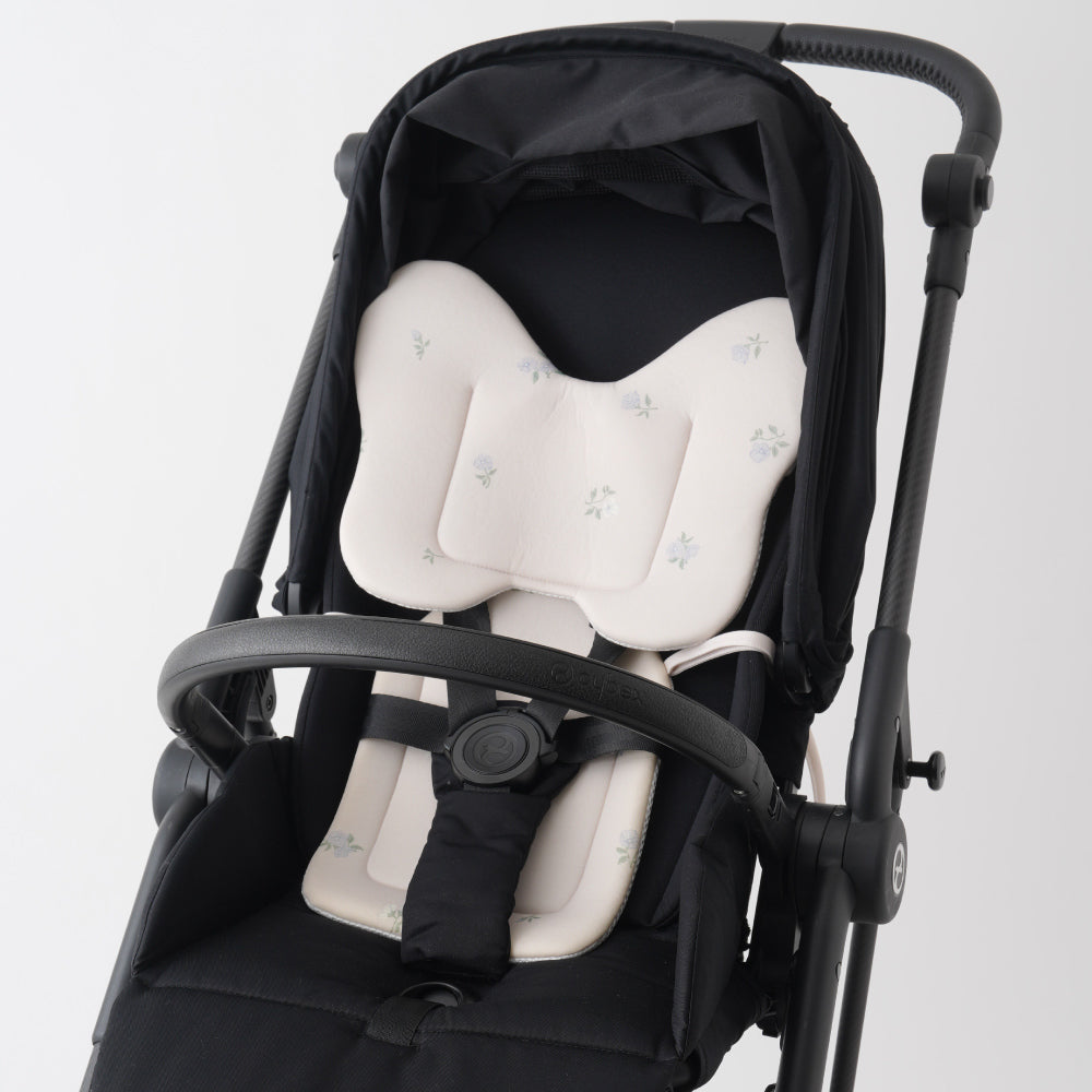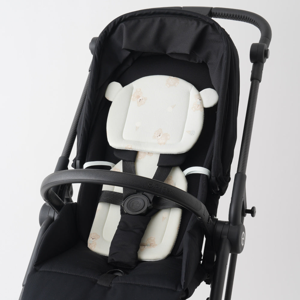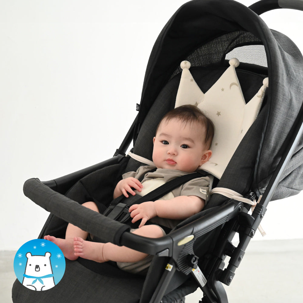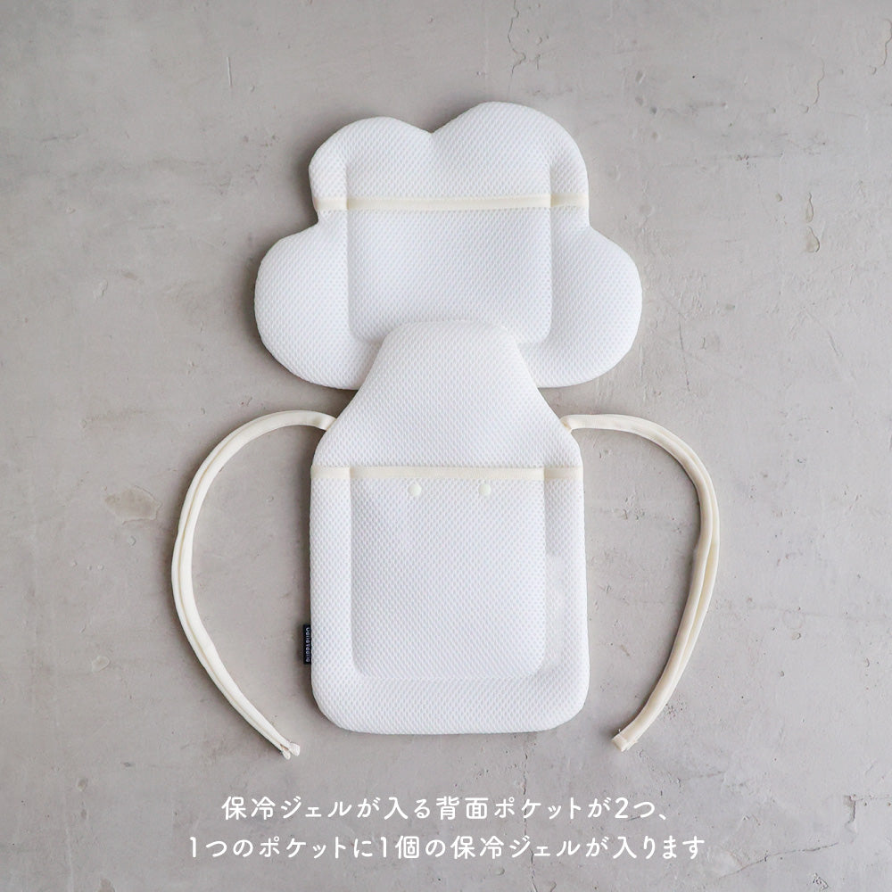 ベビーカーには2つのシートを合体させて使用、ウレタン加工の程よいクッション性と、冷感生地と保冷ジェルで赤ちゃんの頭と背中をひんやり心地良くキープ!
