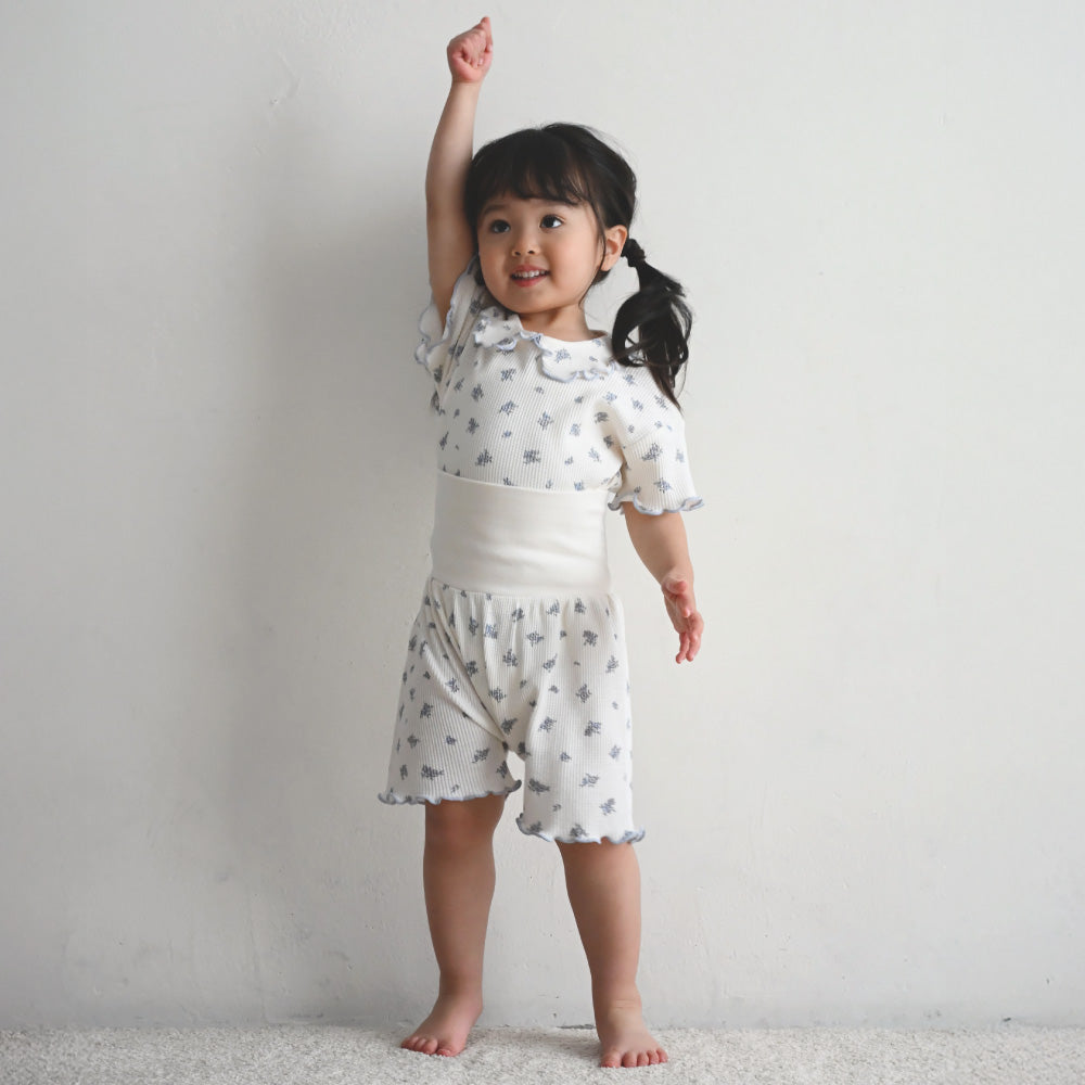 ふんわりした着心地の涼し気な5分丈のズボンはお尻回りもゆったり。70-90サイズはマチ付きタイプのおむつのベビーにも優しくフィット、100・110サイズは動きやすいマチなしタイプ、就寝時や遊びの時間も快適に動きまわれます。
