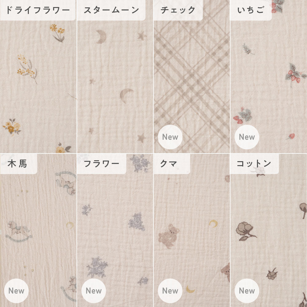ガーゼ生地は、繰り返し洗ったり使ったりすることで、その柔らかな質感が一段と深まります。ベビーのお世話には最適な、やさしいアイテムとして愛されています。肌に触れるものだからやわらかく心地よい肌触りにこだわりました。