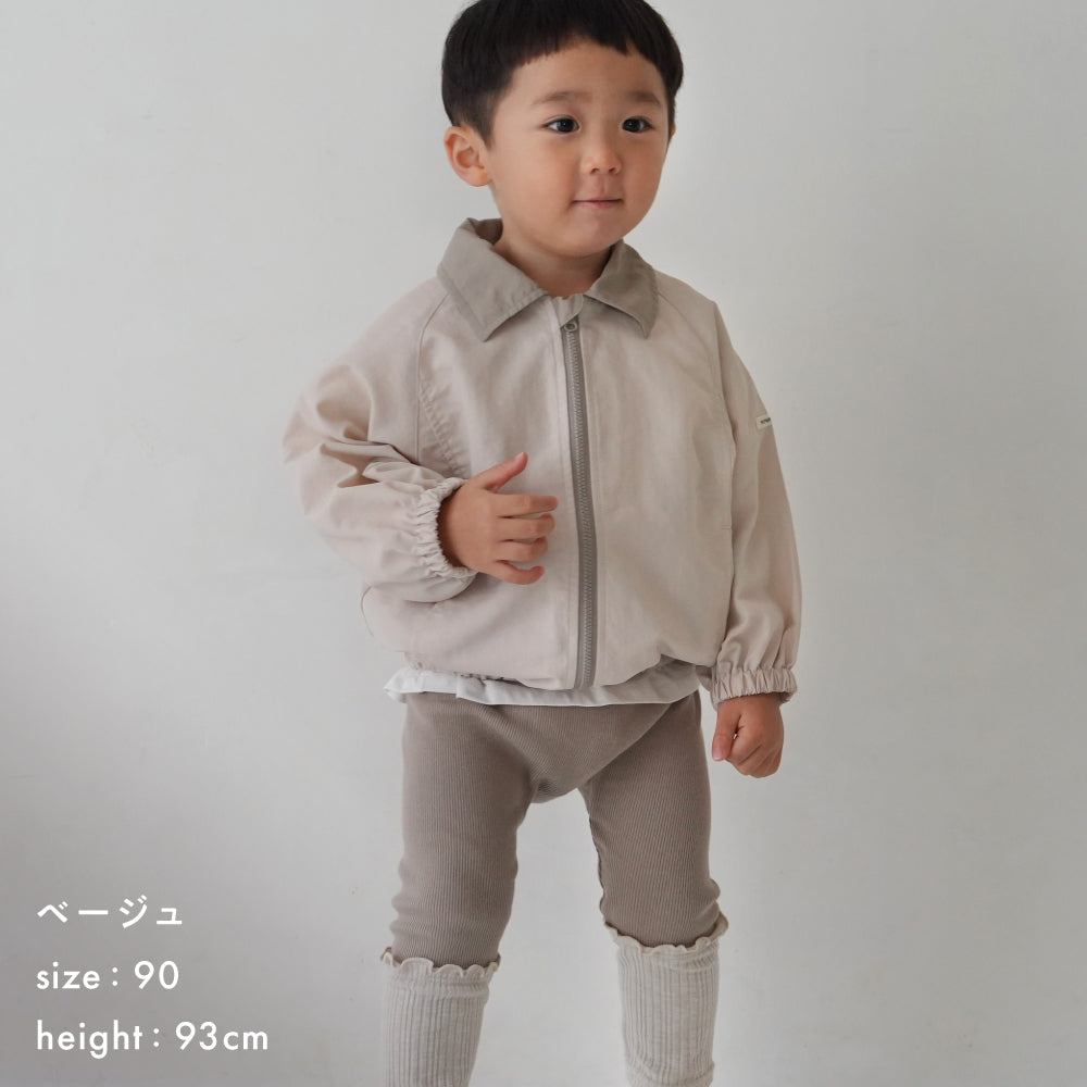 小さな子供でも脱ぎ着がしやすい前面、前開きファスナー。首元にスライダー用のガードを。細かいディティールにも子供服ならではの配慮を。