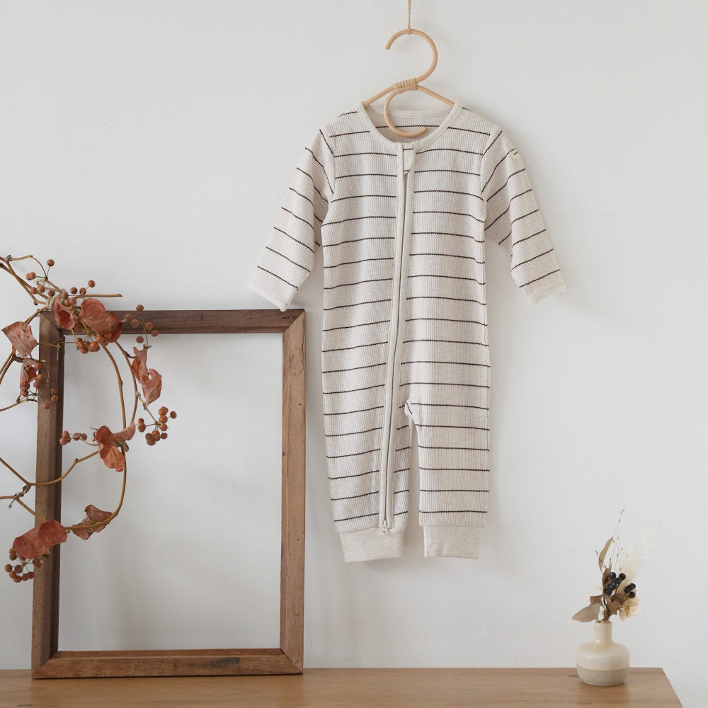 首元にスライダー用のガードを、足元までのファスナー部分も持出しつきでファスナーレール部分が直接肌に当りにくい仕様に。細かいディティールにも子供服ならではの配慮を。