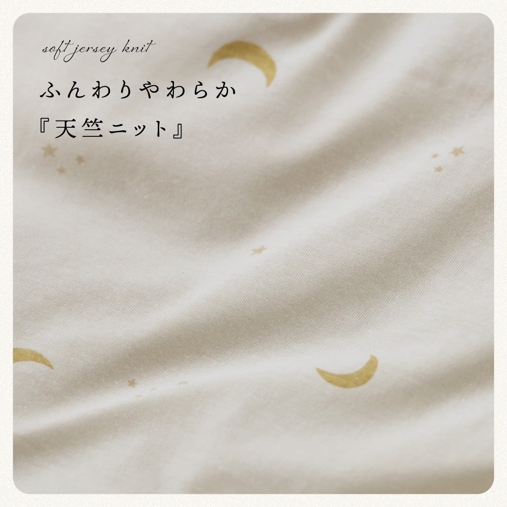 カバーはやわらかくてふんわりサラッとした肌触りの天竺ニットを採用。シンプルなカラーと優しい風合いが赤ちゃんをやさしく包みます。