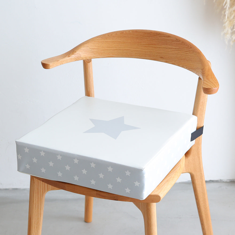 「自分で!自分で!」が始まったお子さまにぴったりの便利グッズ。ハイチェアにはじっと座っていないし、大人用の椅子だと高さが足らない、そんなママのお悩みを解決できるのがお食事クッションです。付け外しが簡単にできるから使わないときは外して大人用の椅子に戻せます。