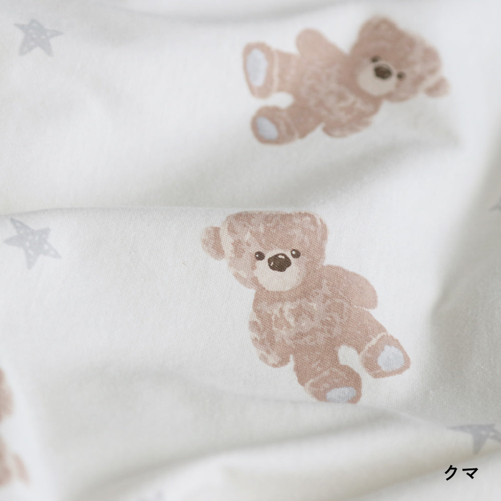 ふんわり優しい肌ざわりの綿100%生地。柔らかで吸水性のいいコットンは生まれたてのベビちゃんにはぴったりの素材です。