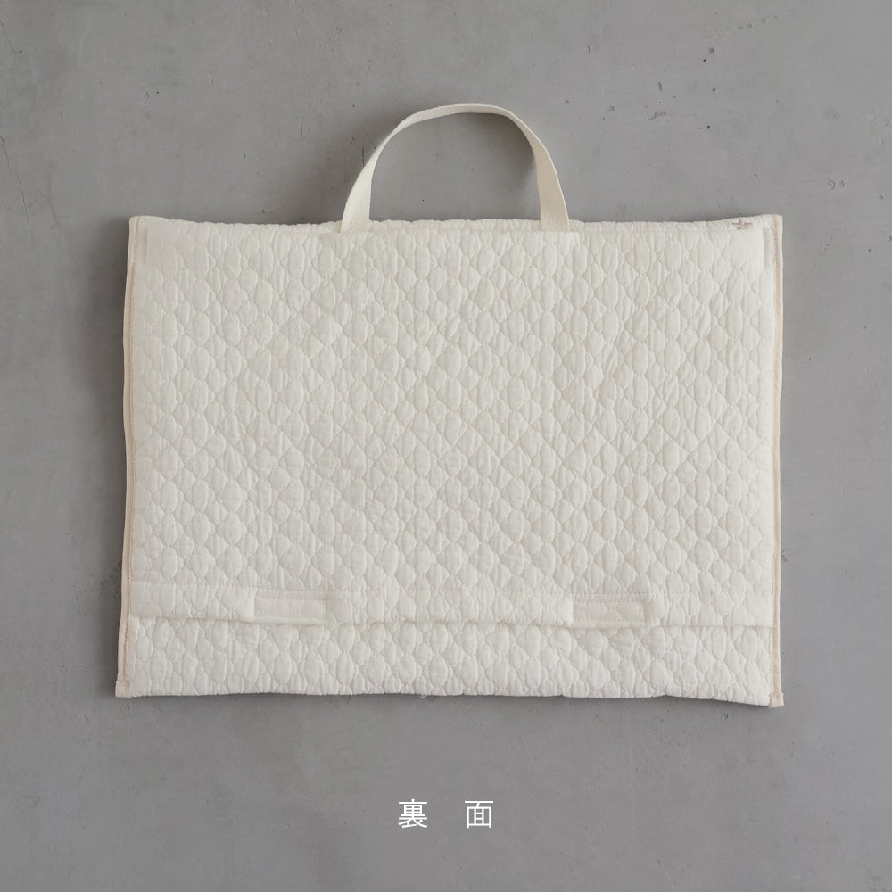 表面の生地はふんわり優しい綿100%。中綿入りのキルト生地だから、背もたれタイプでも、椅子とワンクッションあるのが嬉しい。