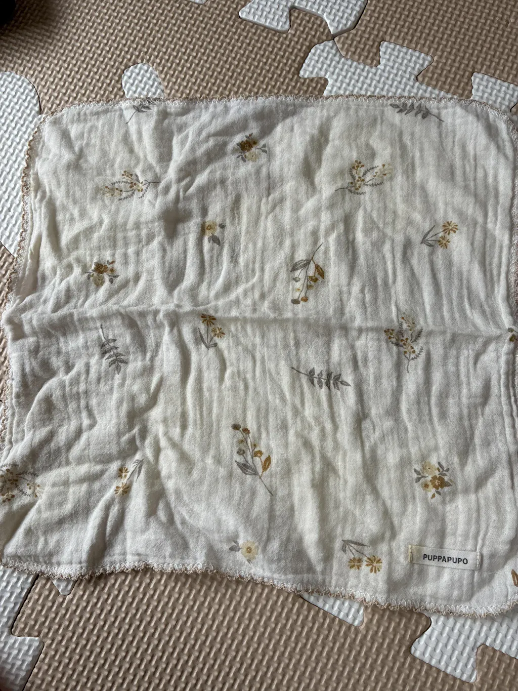 肌触りがとてもやわらかく、赤ちゃんにも安心して使えます。二重ガーゼで乾きやすく、洗い替えにも便利。柄もナチュラルで可愛く、毎日使うのが楽しみです。