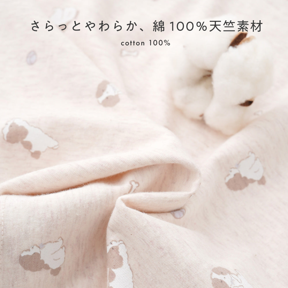 キッズもママも嬉しいコットン100%の天竺素材で、さらっと、やわらかな肌触り。ベビー服・キッズ服として程よい厚さで、長いシーズンお使いいただけます。
