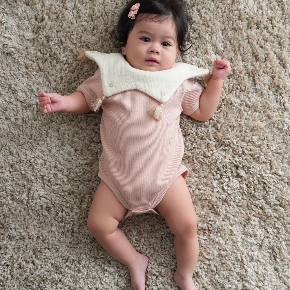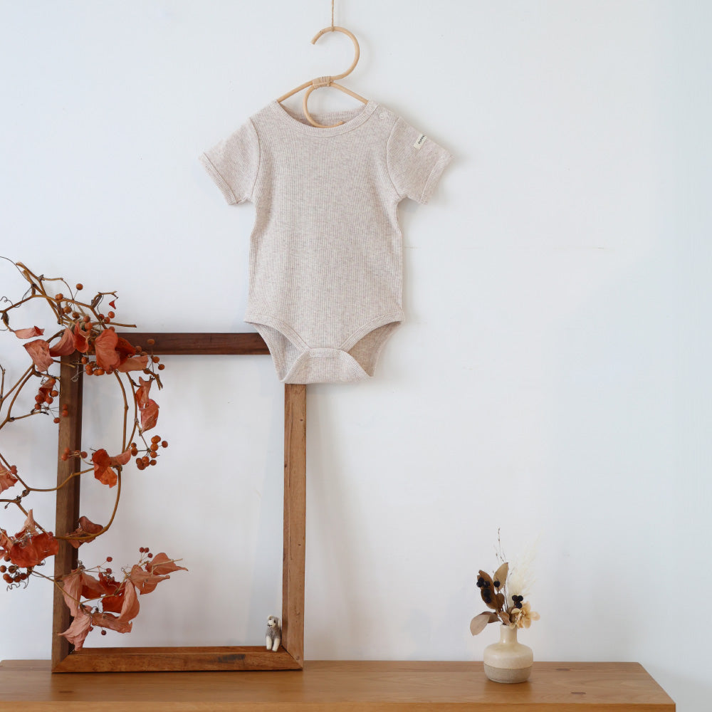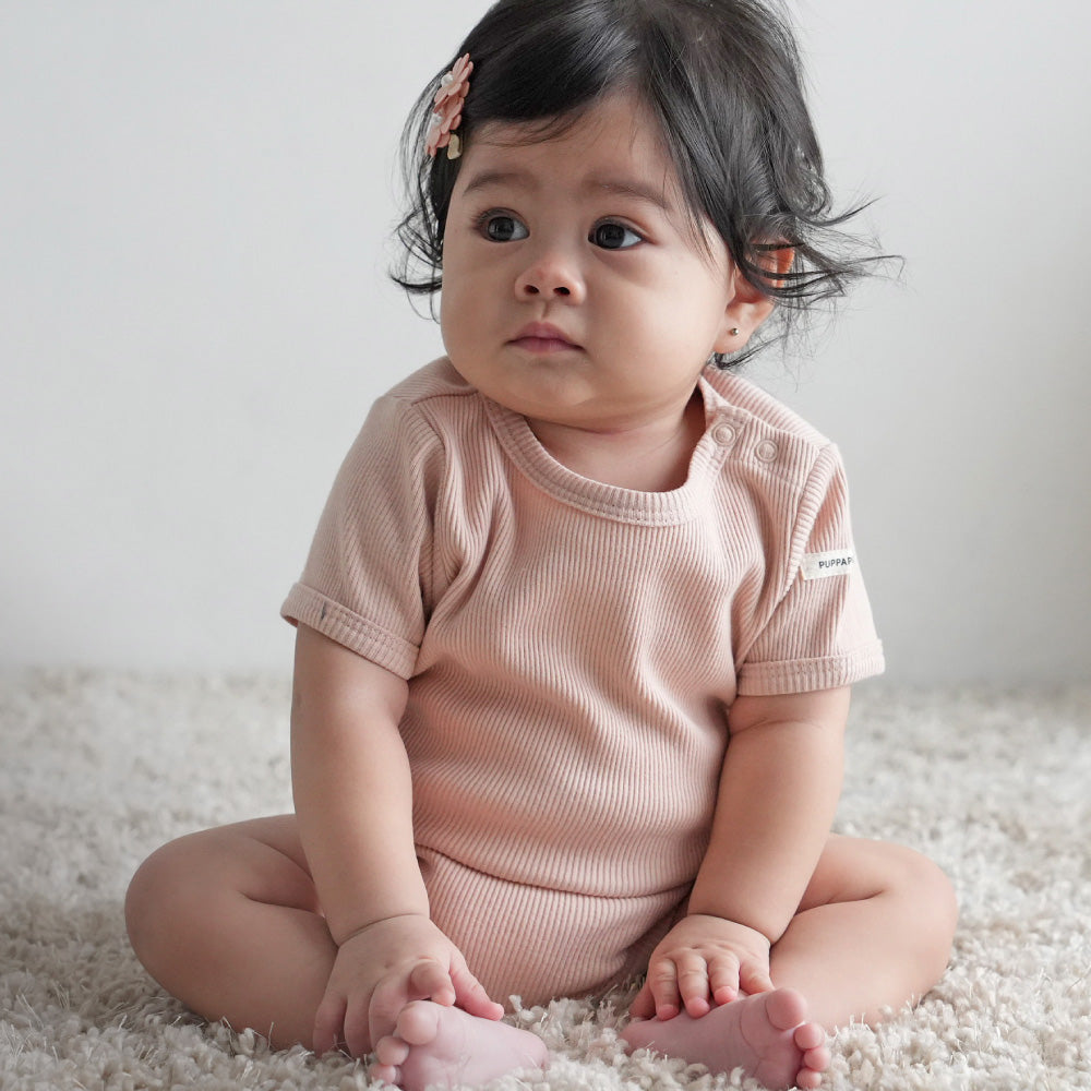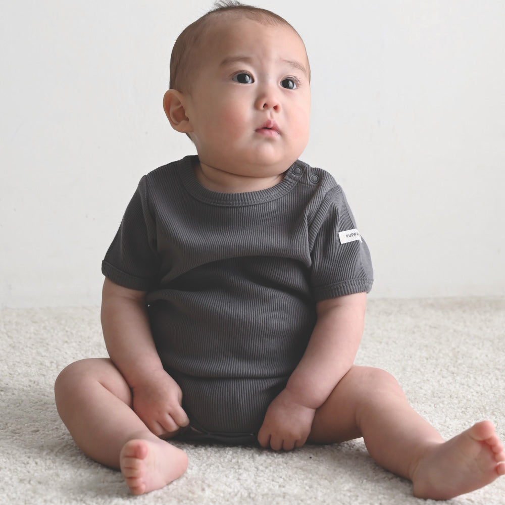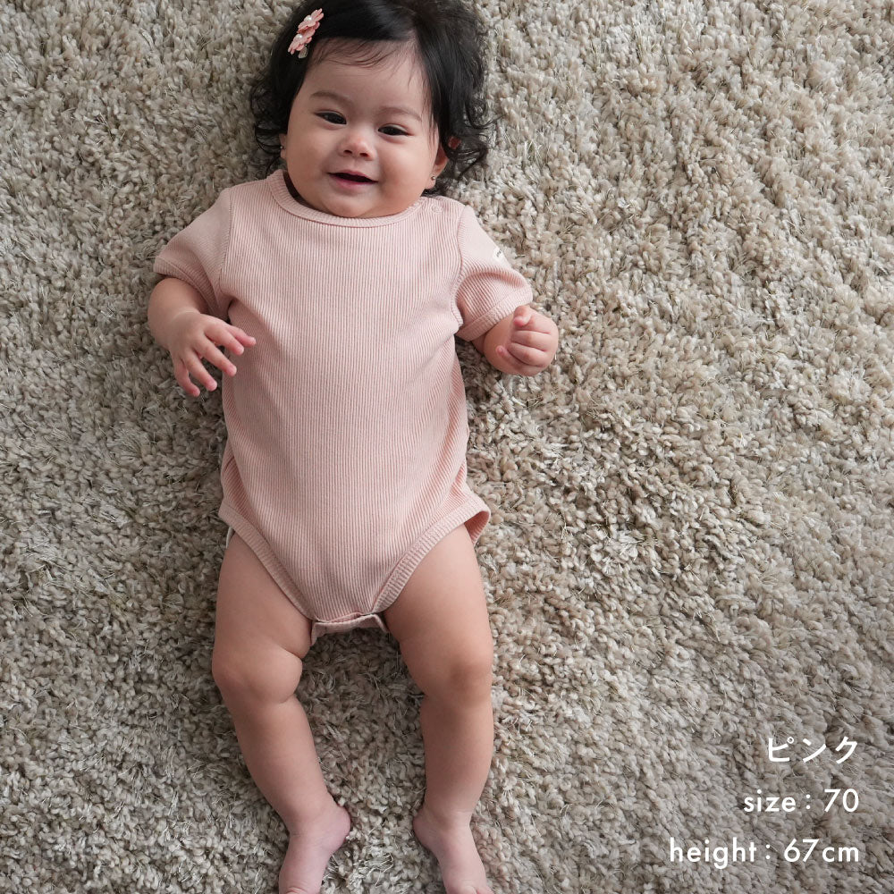 赤ちゃんのお洋服に欠かせないのが、おむつ替えやお着替えが楽にできる事。更には股ボタンのパッチン2重問題!肌着の上から着ることもあるロンパースはおむつ替えの際も股スナップボタンを2重に付け外しする事が大半の為、なるべく手間は少なく、でも形はきれいに見せたい、という思いからボタンは最小限の2つになりました。