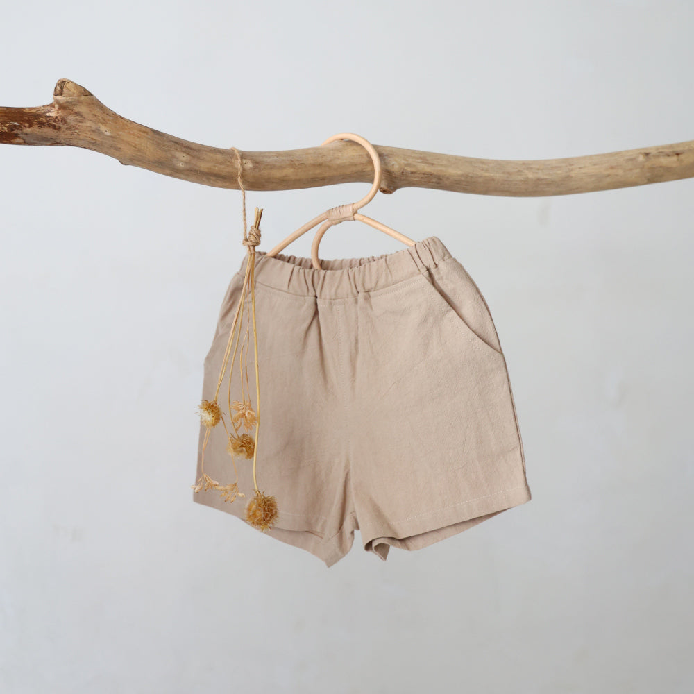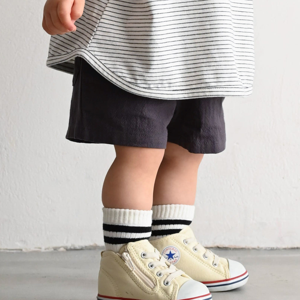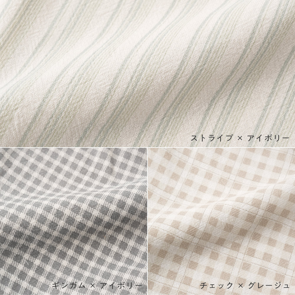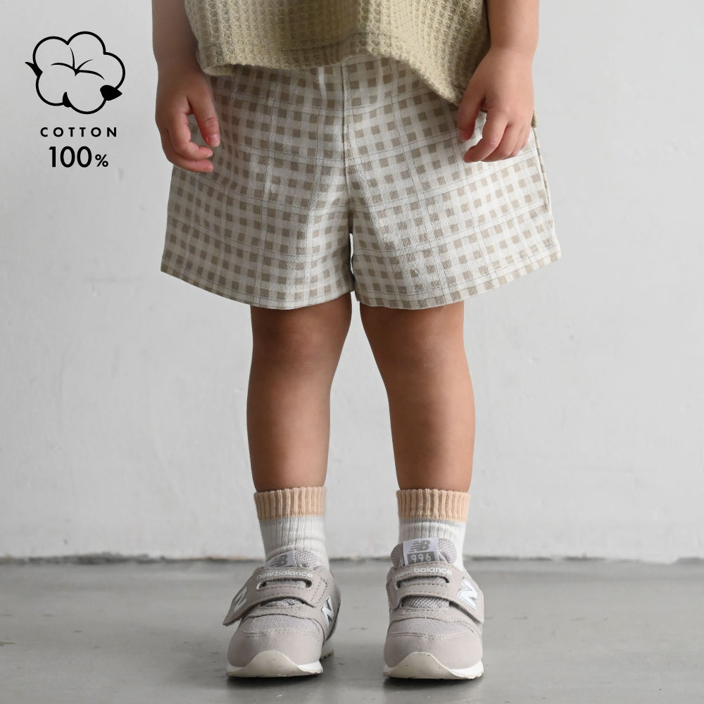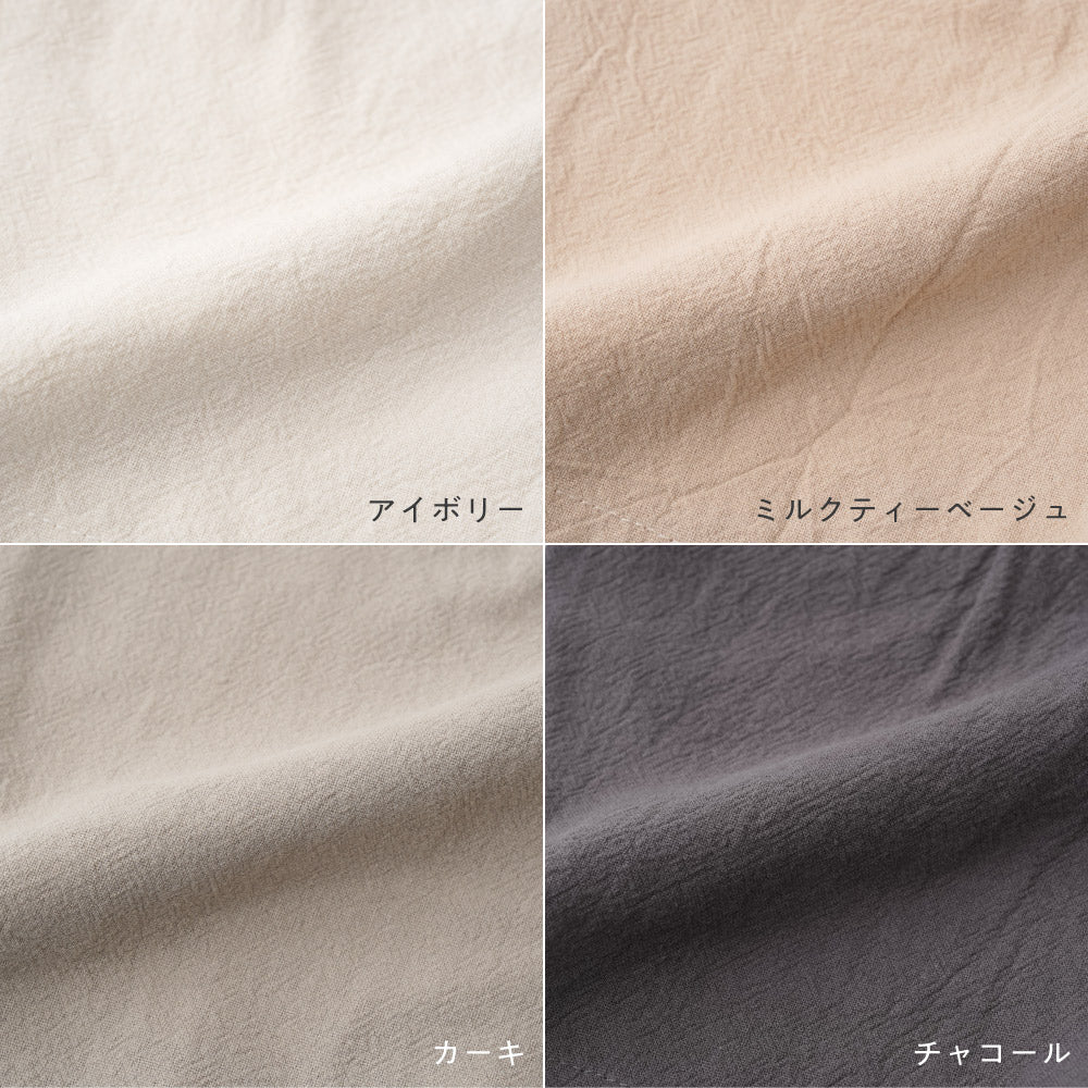 本体はコットン100%、ふんわりやわらかく優しい着心地に。シワ加工がナチュラル感を。薄手で軽量なので動きやすく、ベビー服・キッズ服として春から秋にぴったりです。