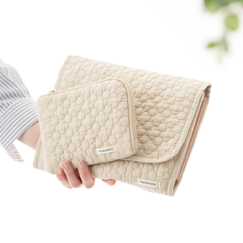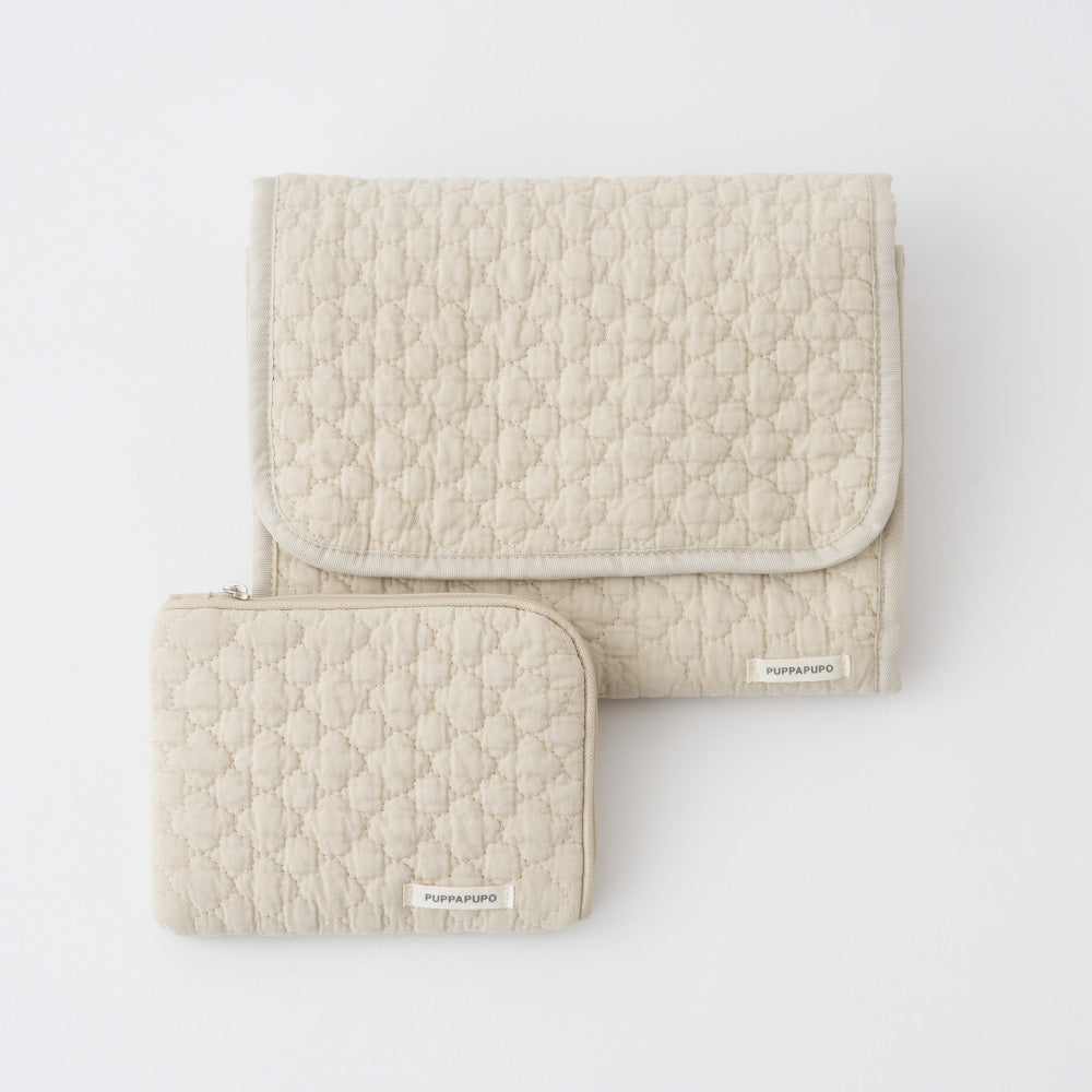 雰囲気のあるイブル生地にポコポコ感のかわいいモロッカン柄キルティングがナチュラルでかわいい。