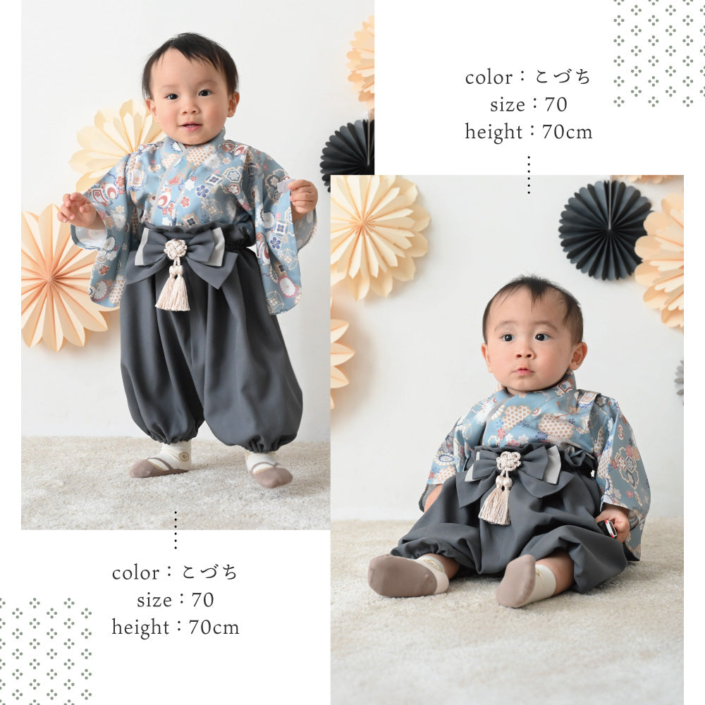 赤ちゃんの時期はお宮参りやお食い初め、初節句など、成長を祝う素敵なお祝い事が盛り沢山。そんな特別な瞬間に華を添える、着物風(和柄)の上下セパレートタイプのベビー用袴はいかがでしょう。おうちフォト・ベビーフォトにもぴったりで、お正月やひな祭り、端午の節句(こどもの日)、百日祝い、ハーフバースデー、お誕生日など、大切なベビーの特別な日にとにかく使えるアイテムです。