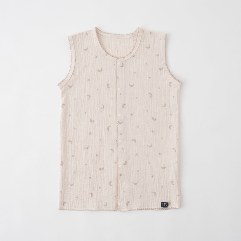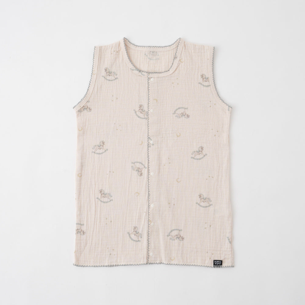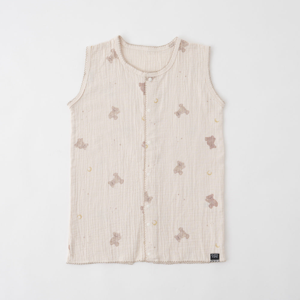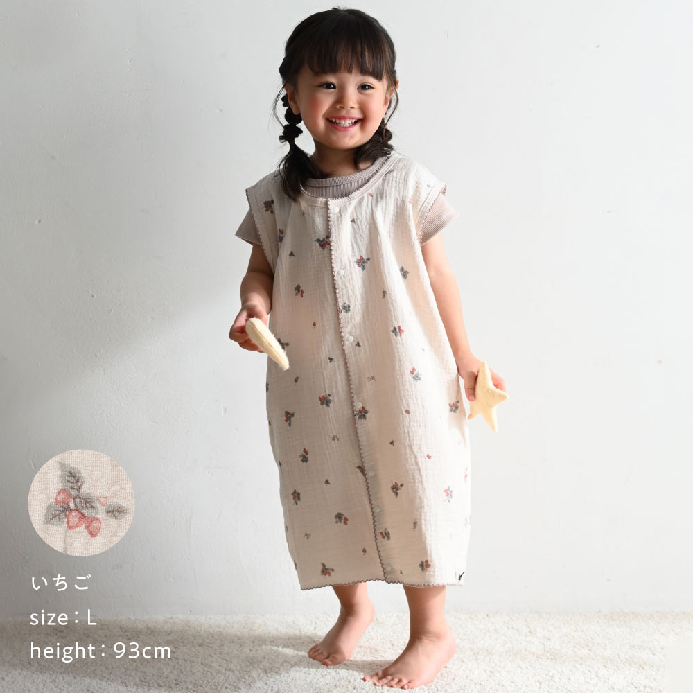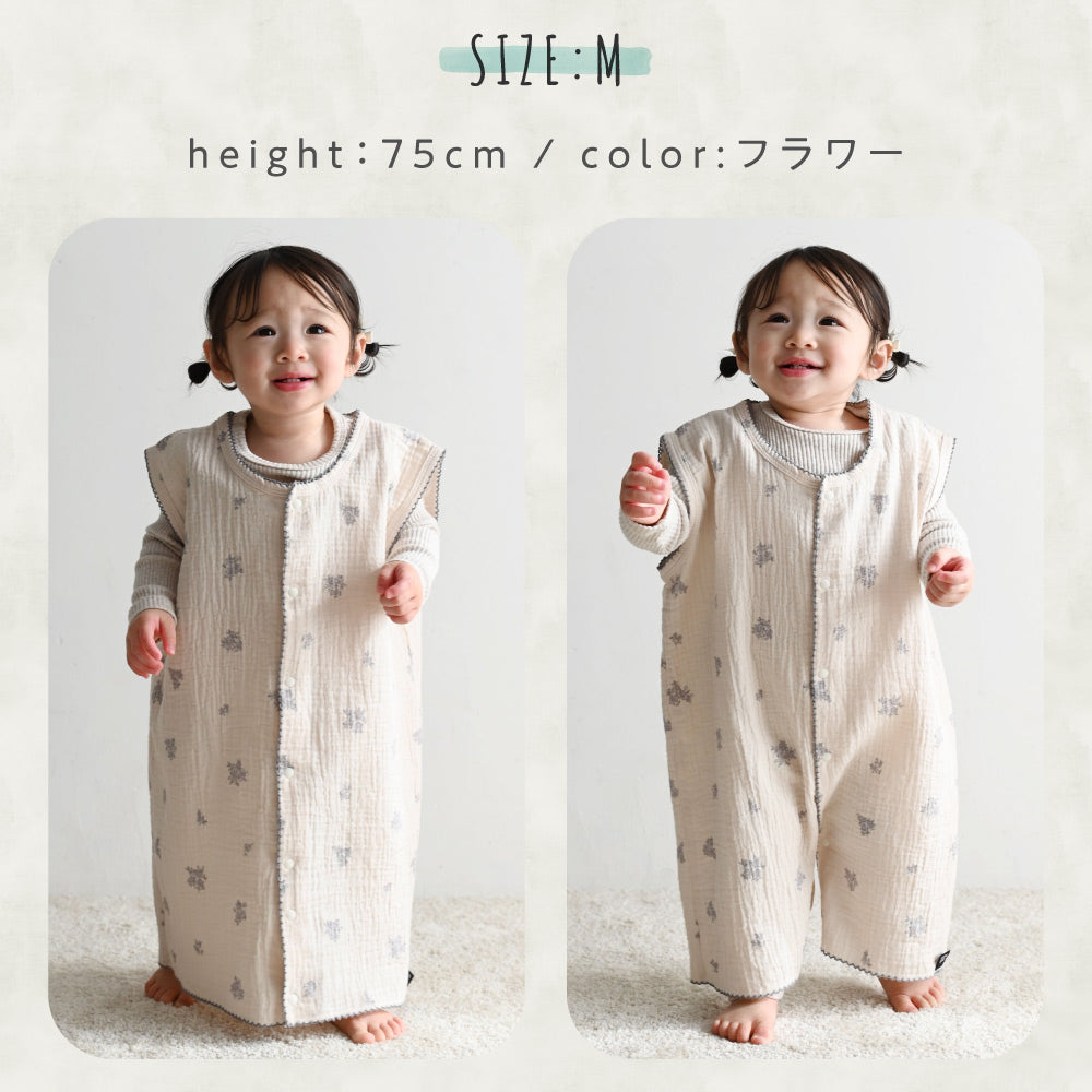 全サイズ裾部分の前後のボタンを留めるとロンパースタイプに、そのままベストタイプとしても、2WAY仕様でお使いいただけます。裾のボタンを留めることで、寝ている時にスリーパーがめくれてお腹がでたりなどのお悩みも解決!寝ている間に動き回っても朝までぐっすりですね。※お子さまの体型や成長等にもよりますが、各サイズのロンパース対応目安身長はSが~60cm前後、Mが~90cm前後、Lが~110cm前後となっております。