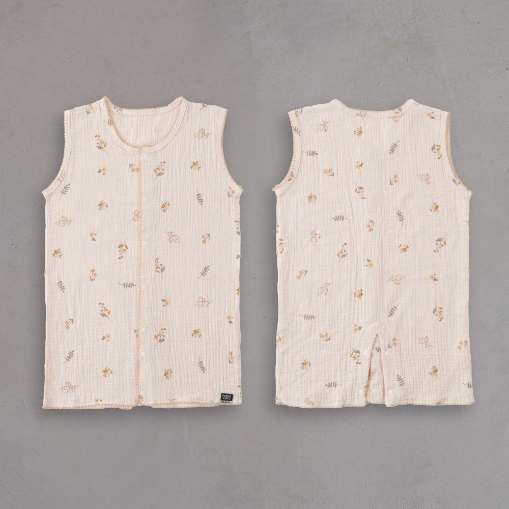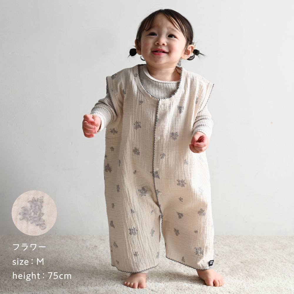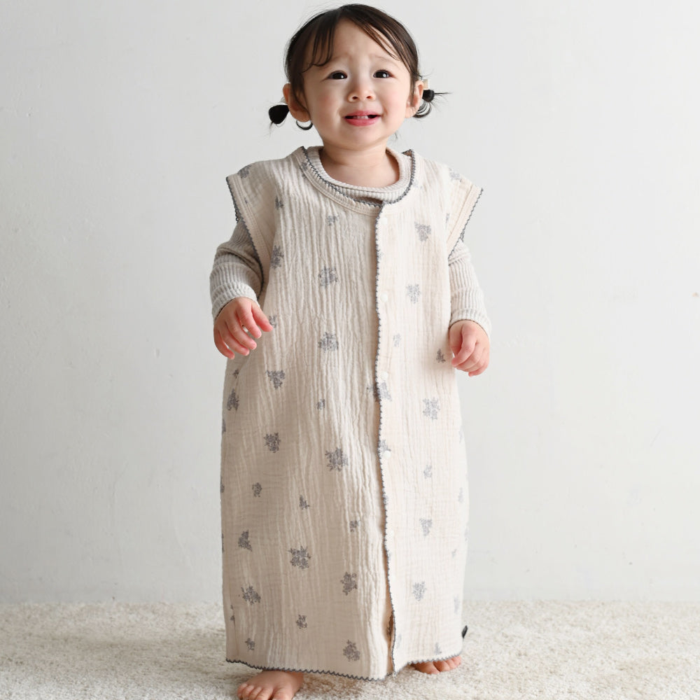 出産準備の人気の定番アイテム、見た目もかわいい綿100%の2重ガーゼスリーパー。しわ感のある生地にナチュラルでどこかクラッシックなボタニカル柄や北欧風なデザインがとてもおしゃれなんです。洗う度に風合いが増すふわっとやわらか綿100%のダブルガーゼ。春~秋にかけて使える涼しい季節にピッタリの薄さです。