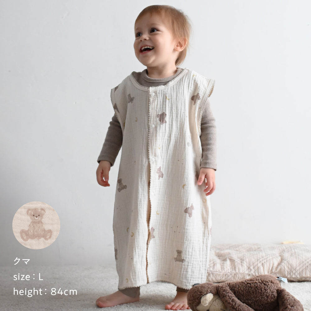 旅行用に薄手のスリーパーが欲しくて購入しました。くま柄がめちゃくちゃかわいくて、他にないデザインでとても気に入りました!プレゼントにもいいなと思います。