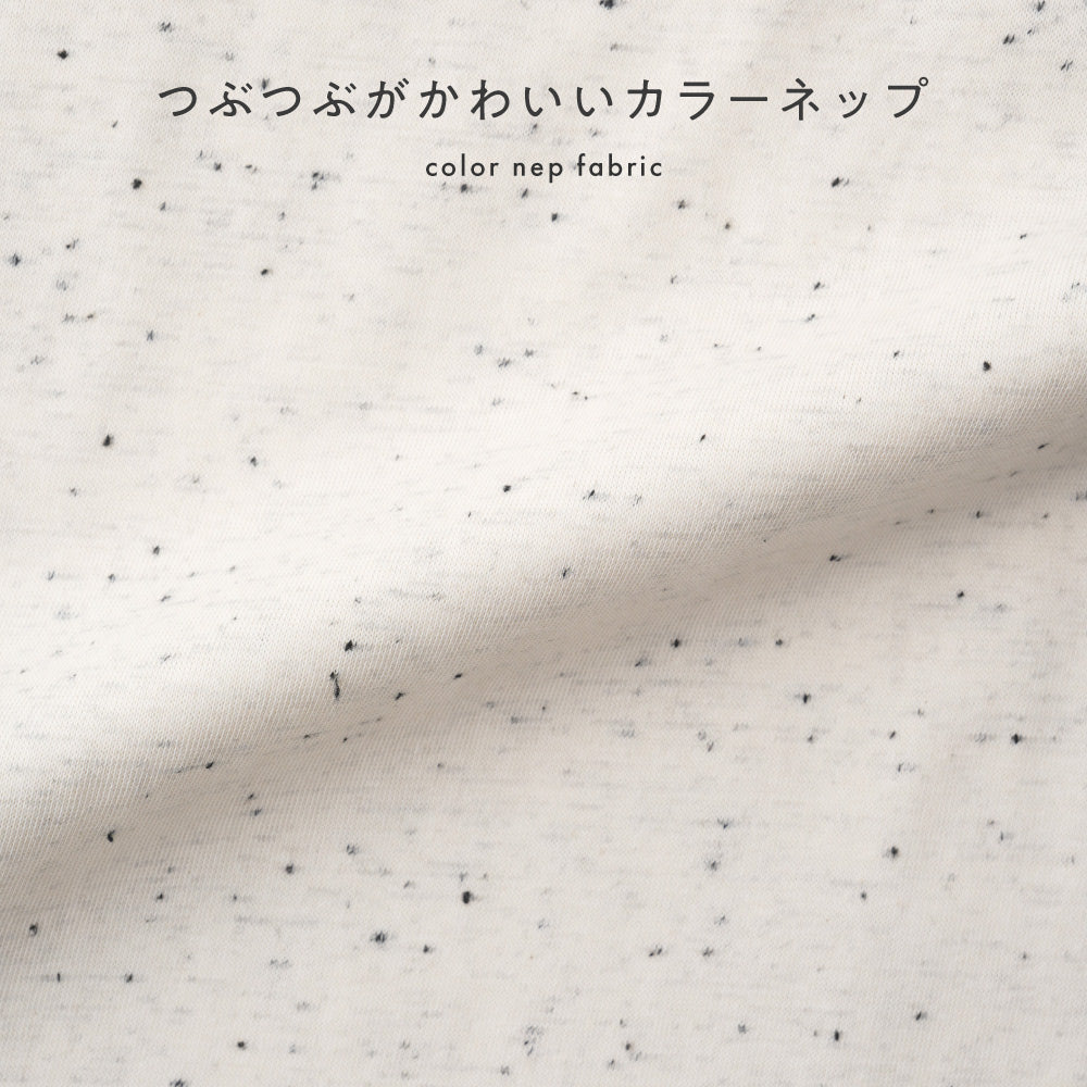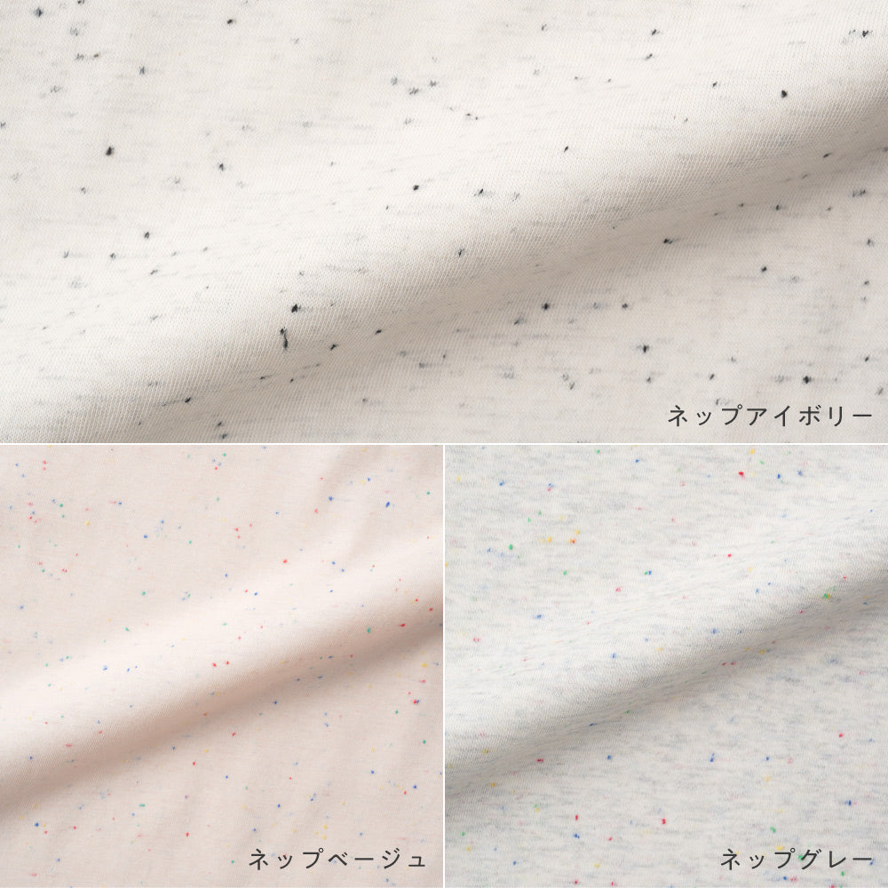 表面につぶつぶとしたカラーネップ糸が混ざっており、独特の凹凸感が特徴。やわらかな肌触りで伸縮性も良く、快適な着心地を。