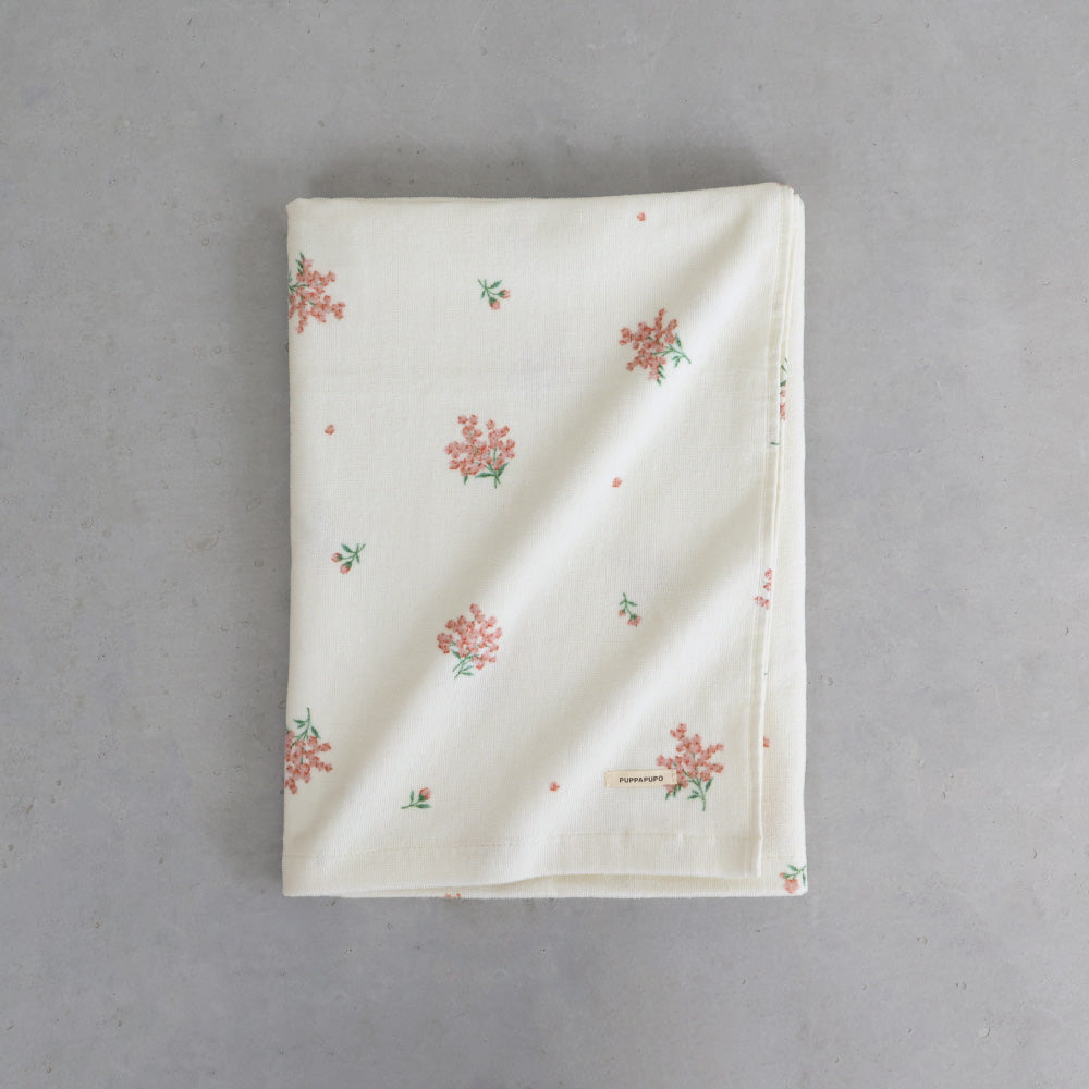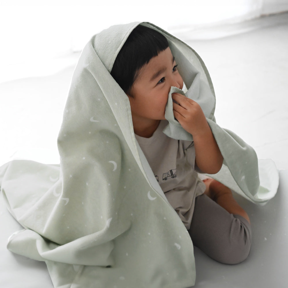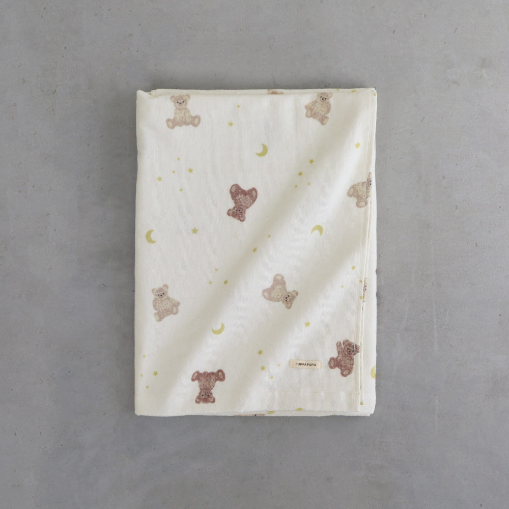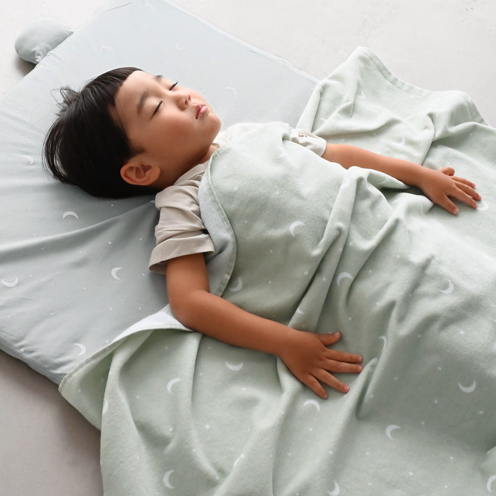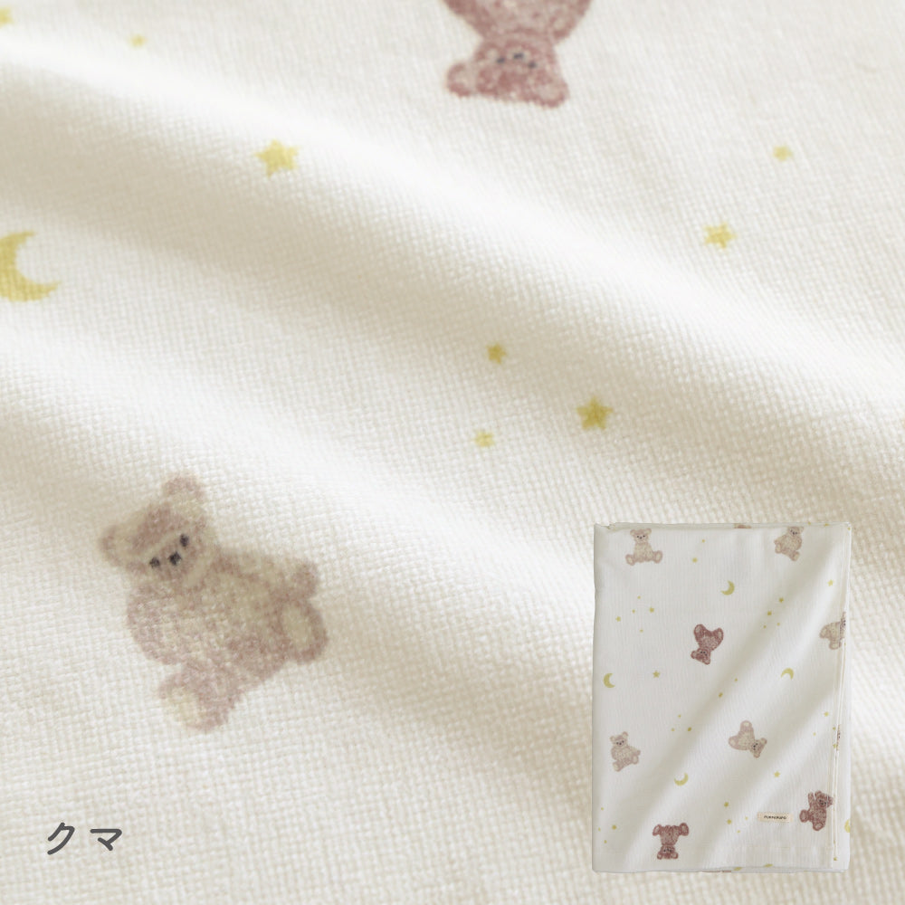 綿100%のふんわり肌触りの良いタオル生地で、暑い時期のお昼寝タイムにピッタリです。ねんねのお子さまを心地よく包み込みます。