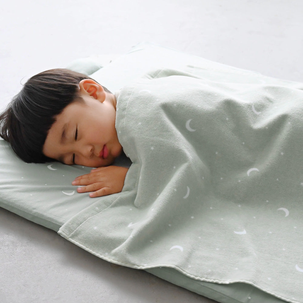 もちろん保育園だけではなくおうち使いにも活躍できます。春夏の掛け布団かわりにサッと使える、ベビー敷き布団とのセット使いはオススメです。