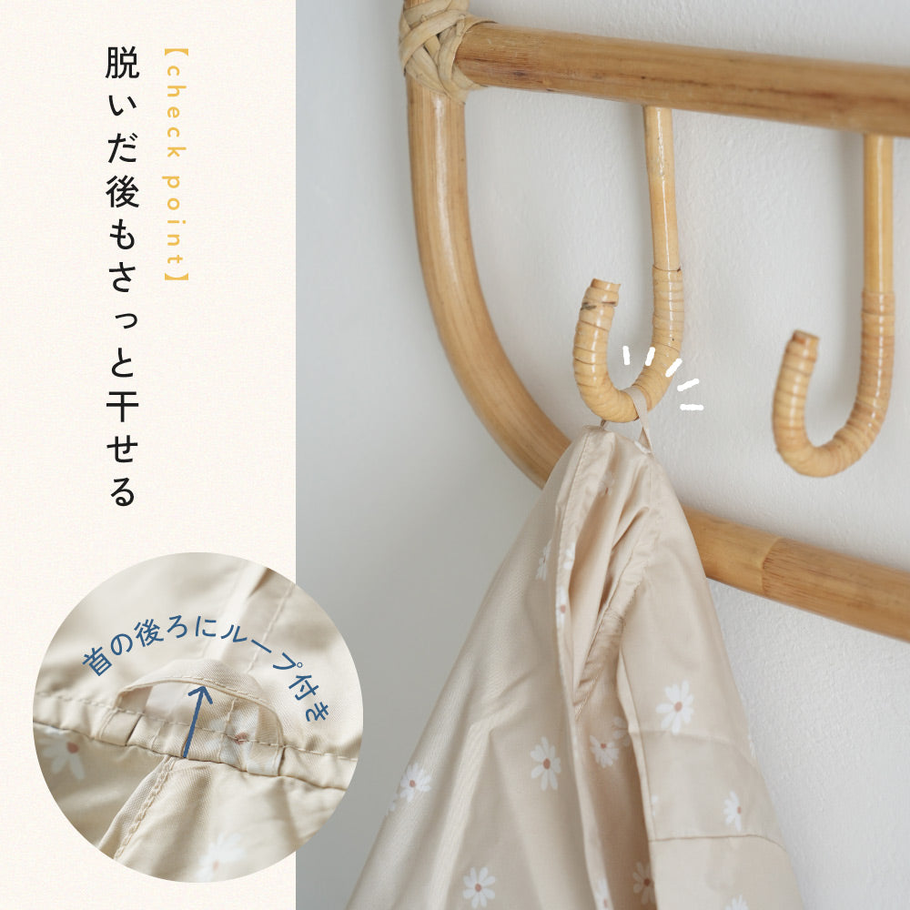 子供が雨の日も楽しくなるおしゃれなキッズレインウェア、保育園から小学生までサイズ豊富で使い勝手のいい子供用のレインコート。ランドセルやリュックを背負ったままレインコートを着られる「ランドセルタック」仕様。保育園や幼稚園の通園や小学校の入学準備・通学にも。普段使いはスナップボタンをつけたまま、ランドセルやリュックを背負う場合はスナップボタンを外してゆったりと着られます。※外したボタンは裏側で留めることができます。
