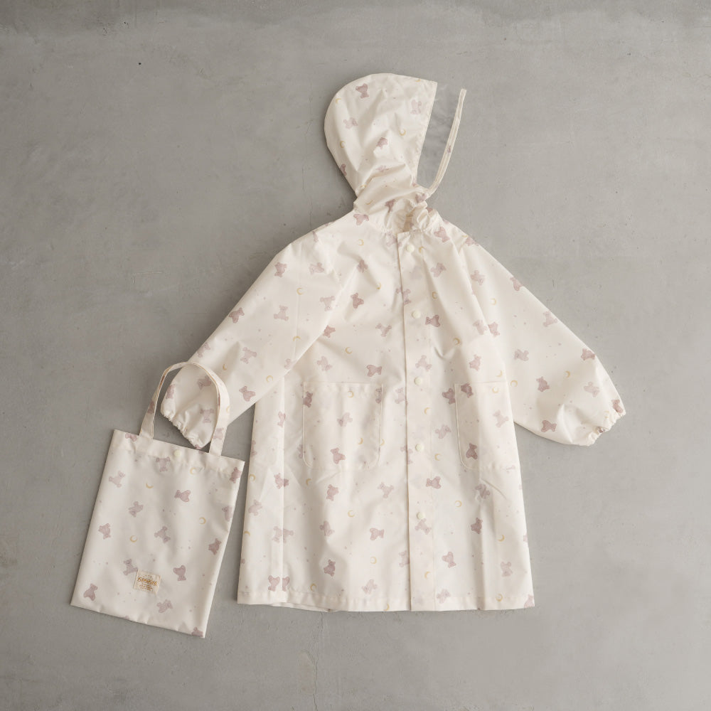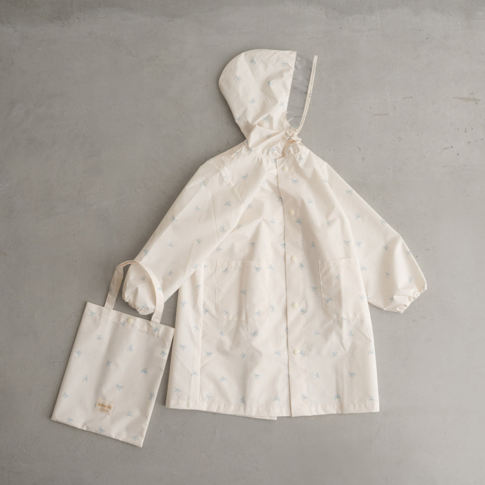 コート本体、ポーチ共にお名前が書ける専用ネームタグ「お名前チケット」も付いています。収納や持ち運びに便利な本体と同じデザインのポーチ付き。お子さまでも自分でお片付けができ、学校や保育園、幼稚園、外出先などの携帯用でもサッと収納、かさばりません。