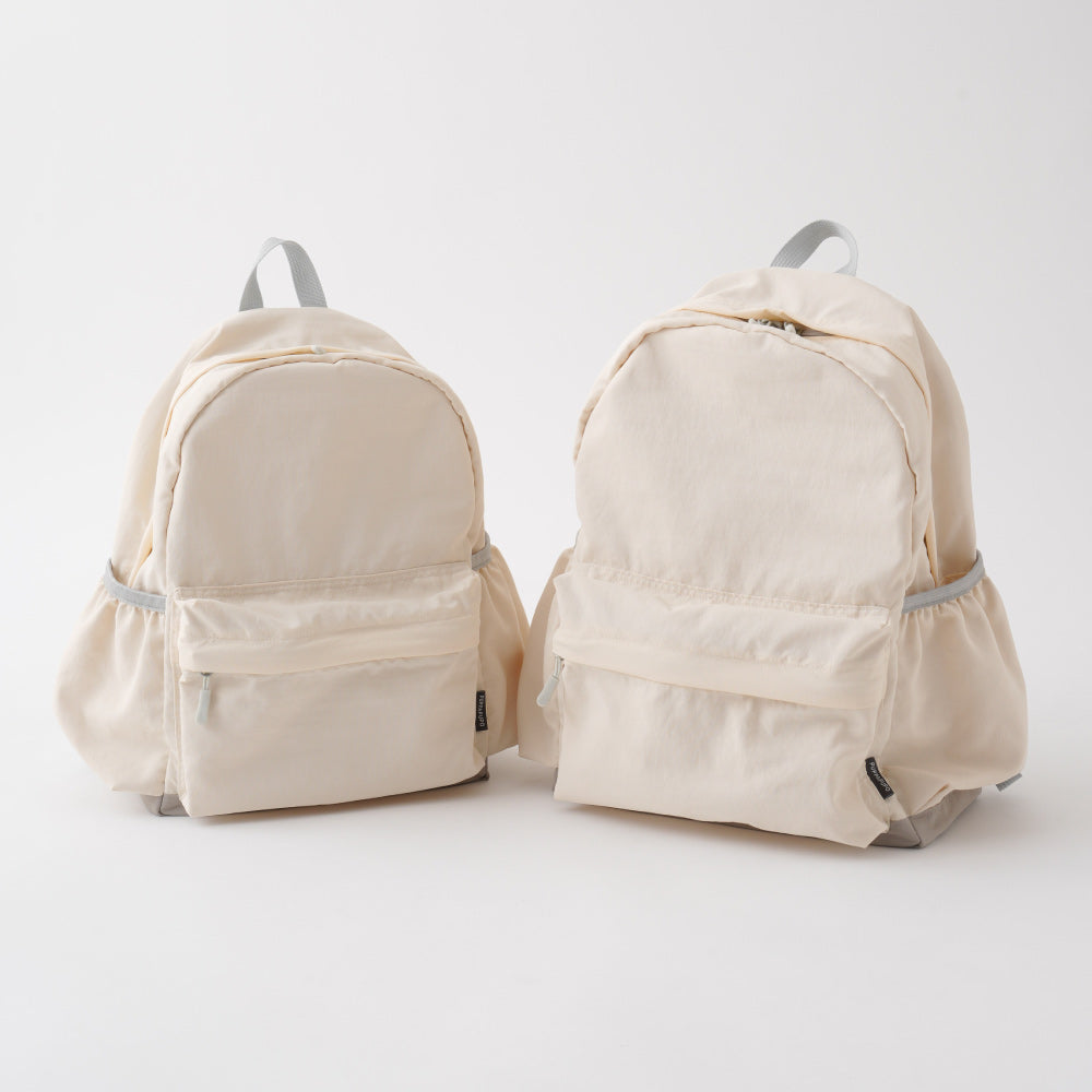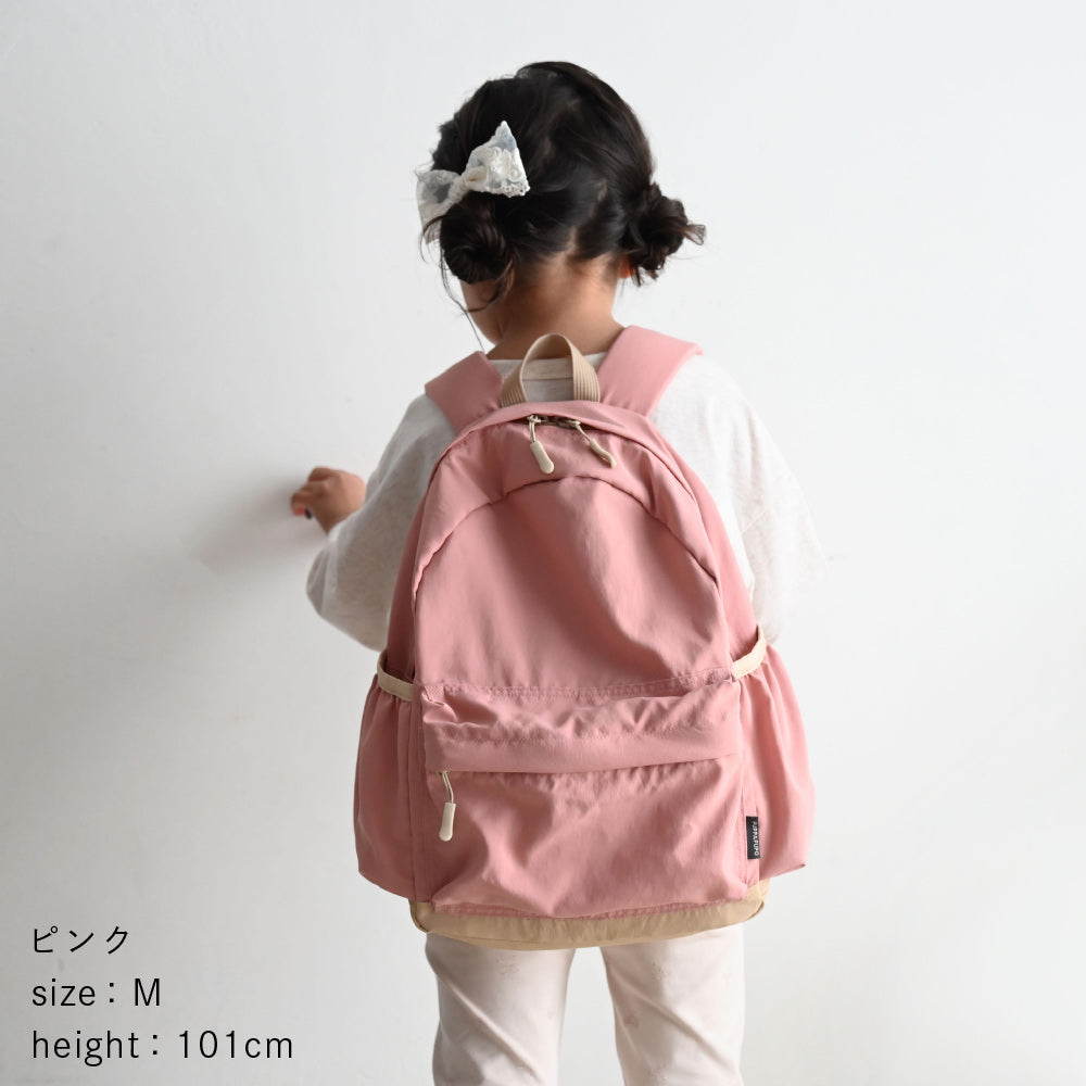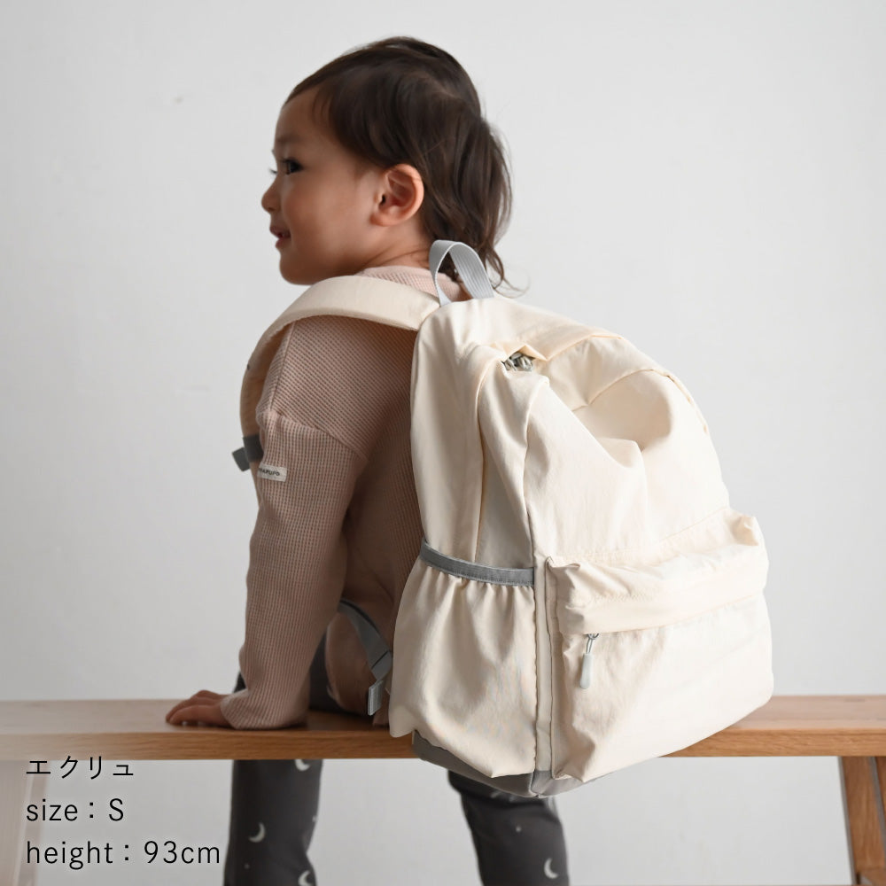 リュックデビューにぴったり、保育園・幼稚園の年少~小学校低学年にはB5サイズ対応のSサイズ(約10.5L)、年中~小学校高学年はA4サイズ対応のMサイズ(約15L)がおすすめ。お子さまの成長や使うシーンに合わせて選べる2サイズです。