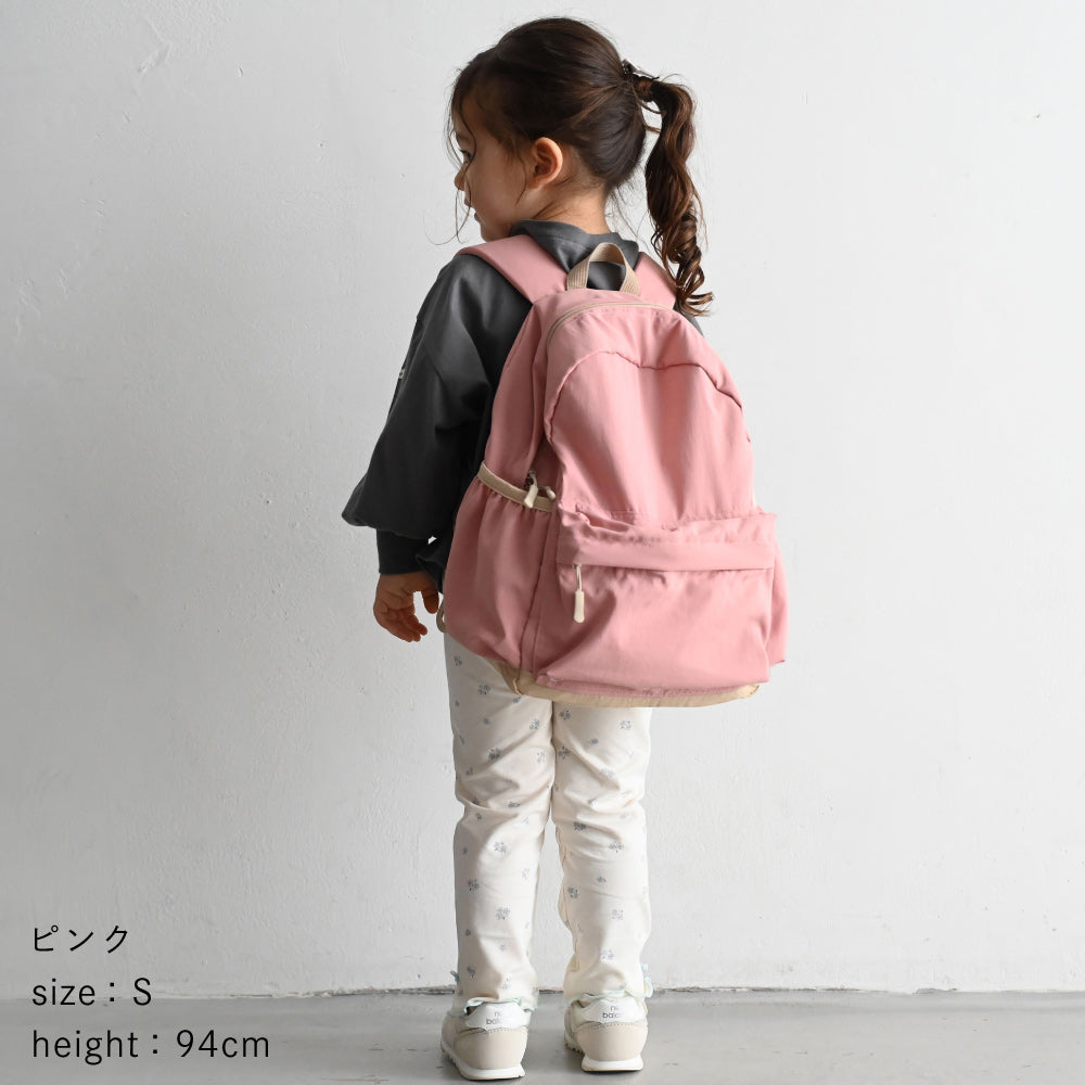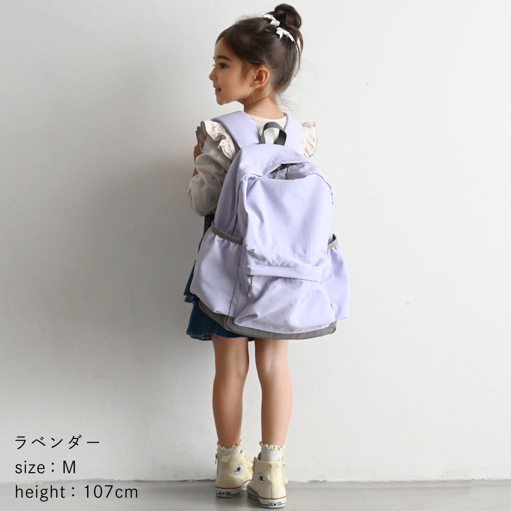 まあるいシルエットが可愛い、軽量でおしゃれな子供用リュック。持ち手長めのダブルファスナーで左右にがばっと開閉もしやすい!撥水加工、リフレクター付きなど、機能性も満載のキッズリュックとは思えない満足度の高い「イチオシ入園・入学アイテム」。小学生の遠足におすすめなMサイズや通園にぴったりなSサイズはお気に入りのぬいぐるみやおもちゃを詰め込んで普段のおでかけの時にも◎