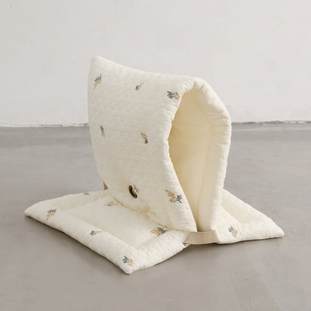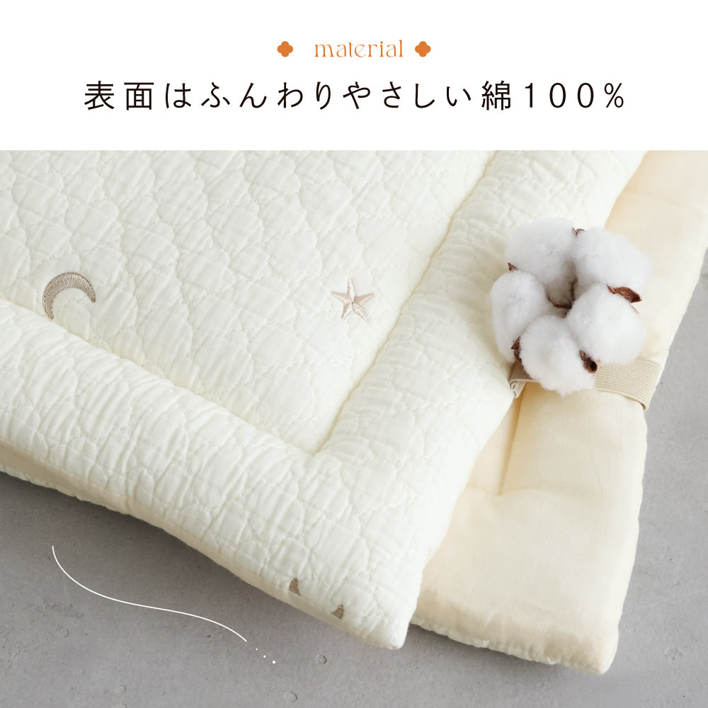 表面は顔にあたる内側もお座りした時にあたる外側も肌触りのいい綿100%を採用。