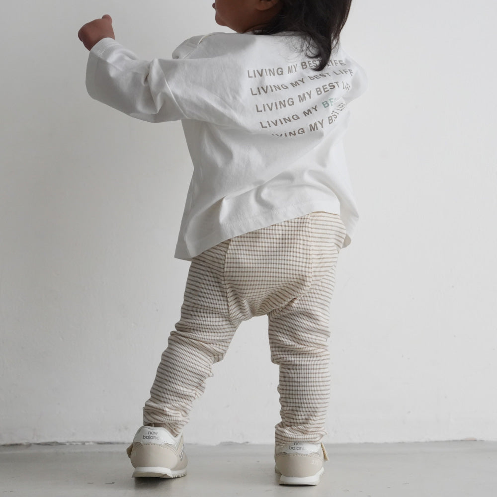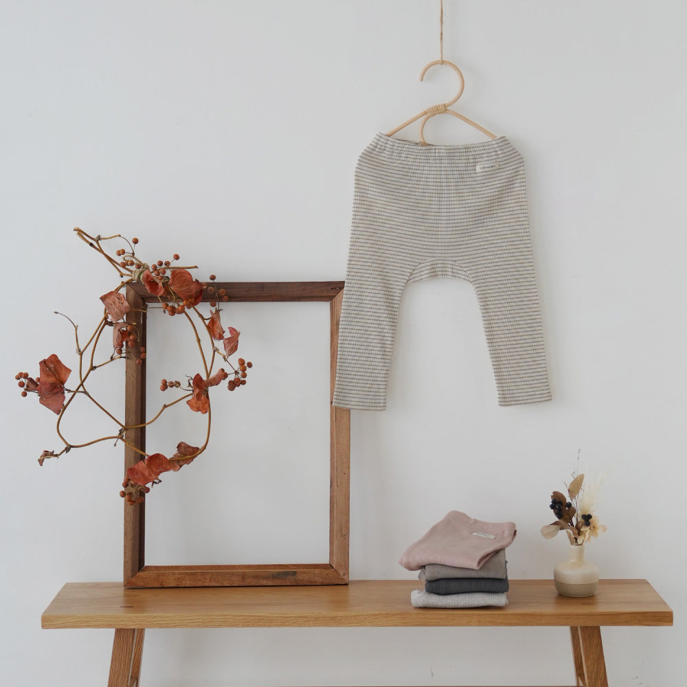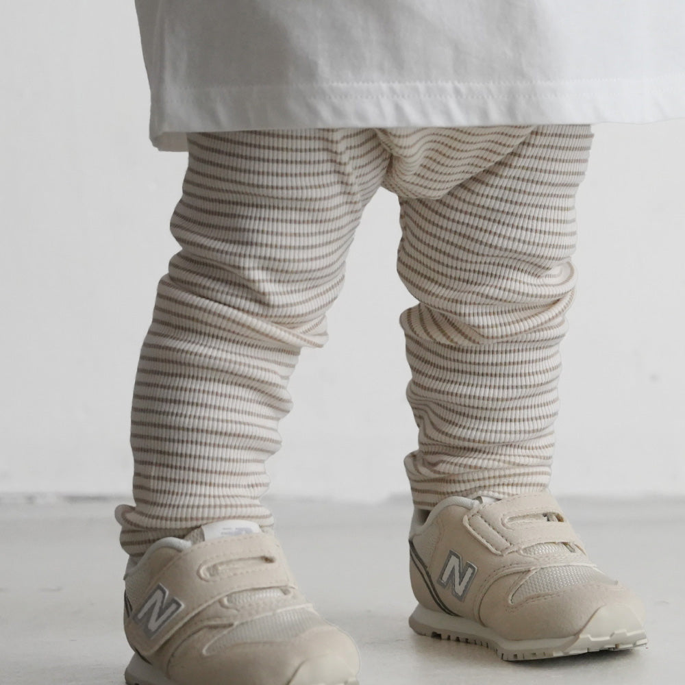 春から保育園に通う娘の保育園着として六着購入しました🫶🏻💭既存のリブレギンスパンツと比べると薄手で動き回るベビちゃんには熱がこもりすぎずいいなぁと思いました❕