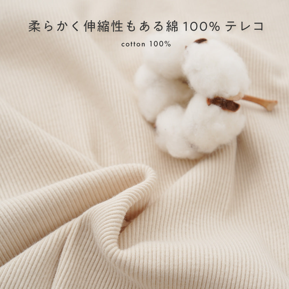 柔らかでしなやかな伸縮性のあるリブ編みのテレコは、肌触りが良く、身体に心地よくフィットします。シワになりにくく、型崩れしにくいのも長所です。