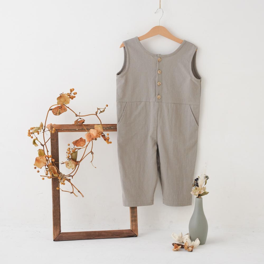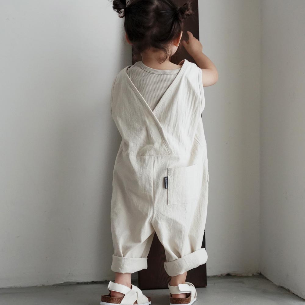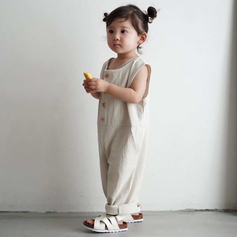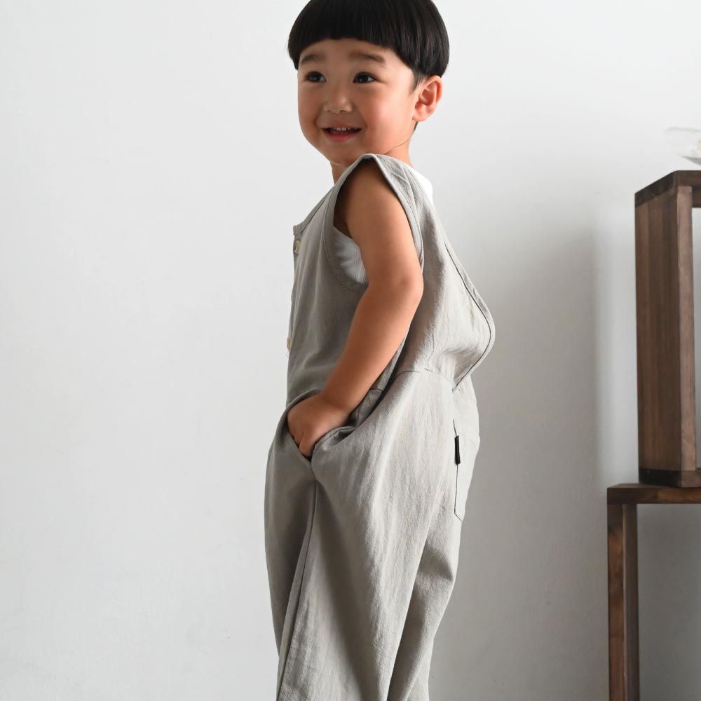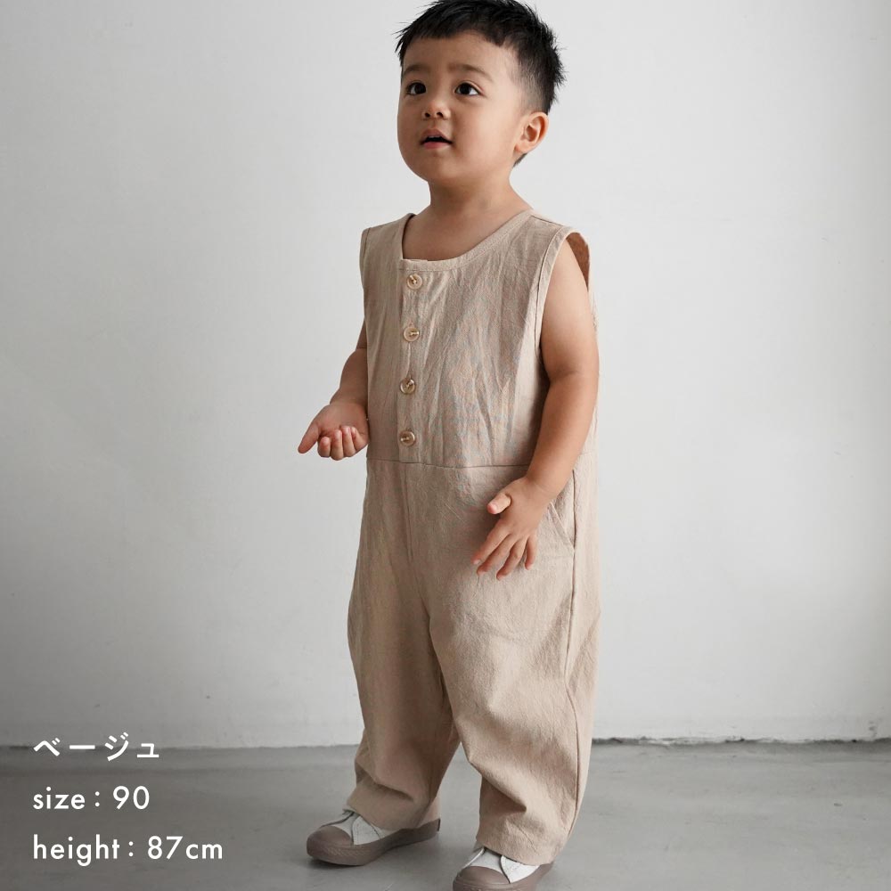 小さな子供でも脱ぎ着がしやすい前面ボタン開きのデザインです。細かいディティールにも子供服ならではの配慮を。