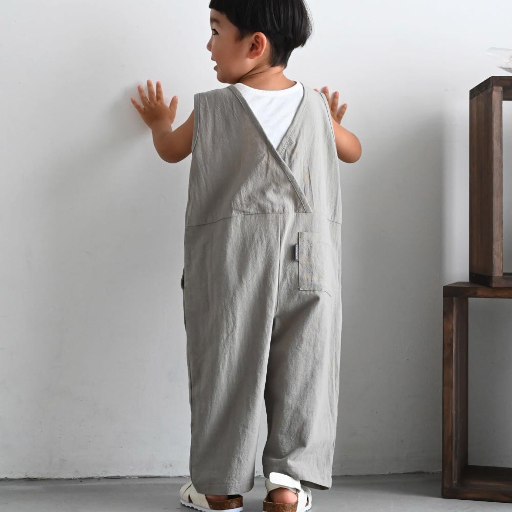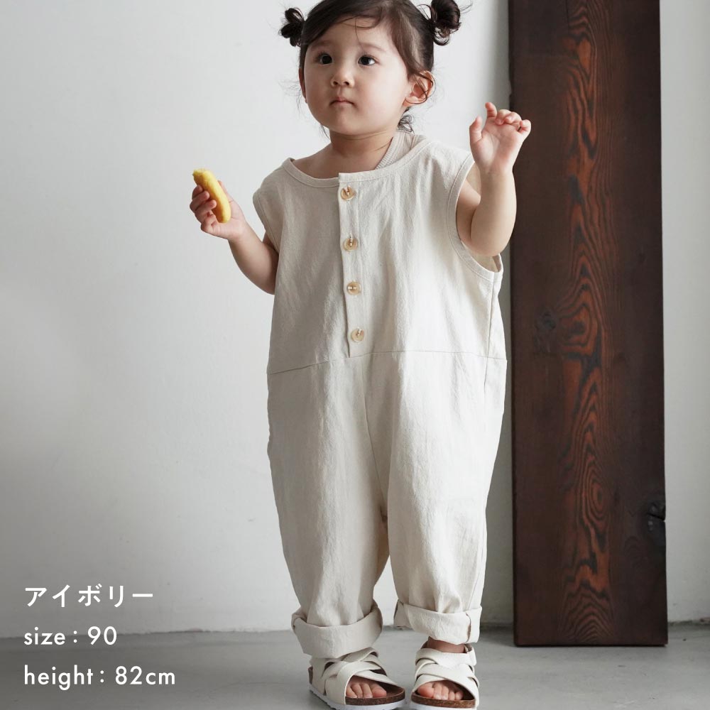 本体はコットン100%、ふんわりやわらかく優しい着心地に。シワ加工がナチュラル感を。薄手で軽量なので動きやすく、ベビー服・キッズ服として春から秋にぴったりです。