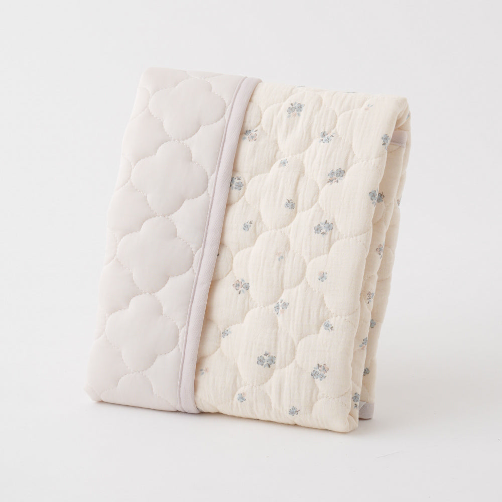 ダブルガーゼ地はふんわり優しい肌触りでオーガニックコットン100%。モロッカンキルトのぽこぽこ感が、ガーゼのやわらかな質感と相まって、ふわふわと愛らしい感触になっているのがポイントです。※オーガニックコットンとは、オーガニック農産物等の生産方法についての基準に従って2 ~ 3 年以上のオーガニック農産物等の生産の実践を経て、認証機関に認められた農地で、栽培に使われる農薬・肥料の厳格な基準を守って育てられた綿花のことです。
