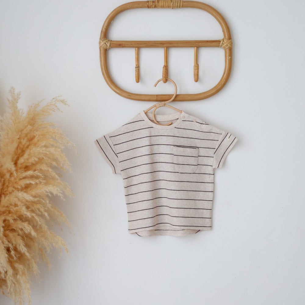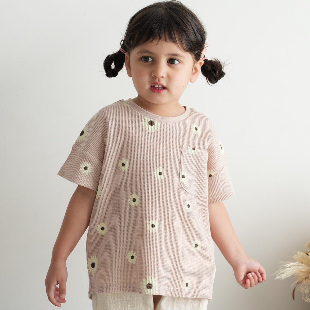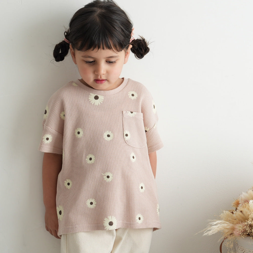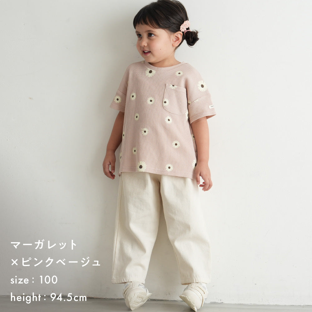 伸縮性のあるワッフル素材で、さらっと軽く、ゴワゴワしないやわらかな肌触り。柄プリントは綿100%。※ボーダーは綿100%ではありません。こちらの製品は柄によって組成が異なります。ベビー服・キッズ服として程よい厚さで、長いシーズンお使いいただけます。
