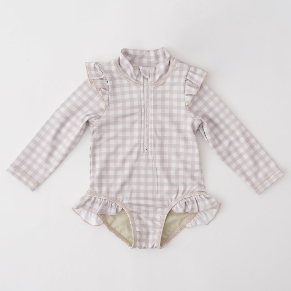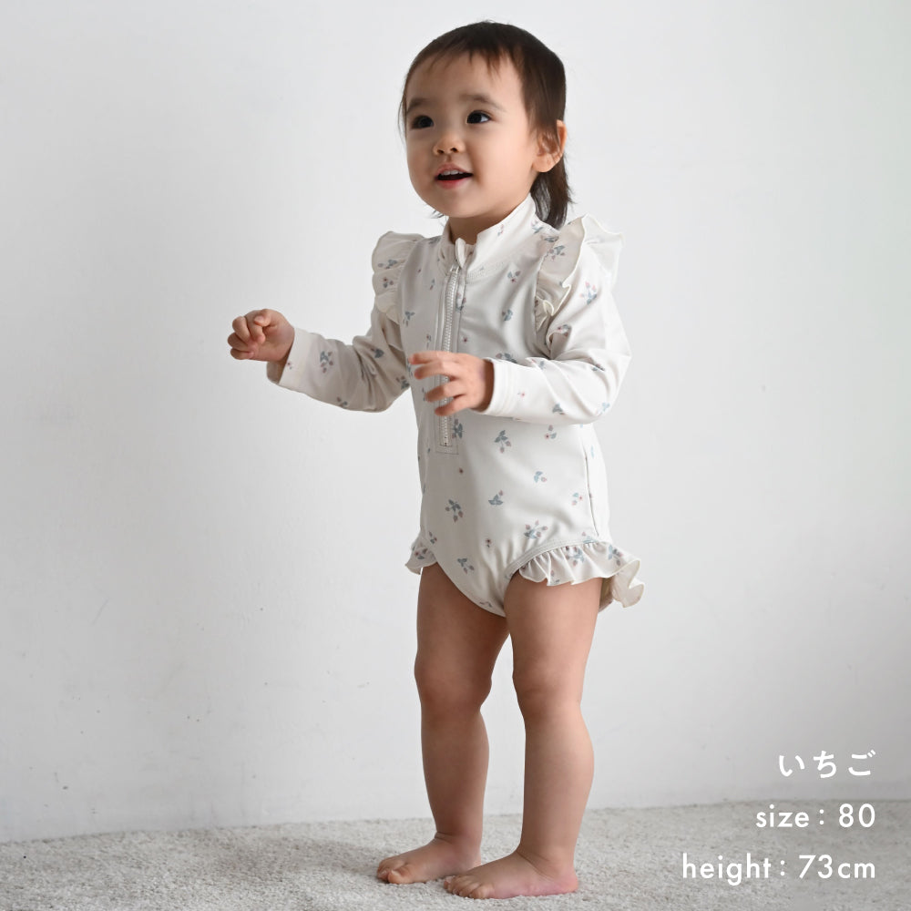 ロンパースタイプのラッシュガード水着+スイムキャップの2点セット。(スイムキャップは有り無しが選べます。)保育園や幼稚園、海やプール、公園の噴水など子供達の大好きな水遊び。春・夏・秋に気になる紫外線や虫よけ・冷え(寒さ)対策にかかせないラッシュガード。ロンパースタイプの水着なのでこれ1枚でアクティブに楽しみたいベビー・キッズ達にピッタリ。