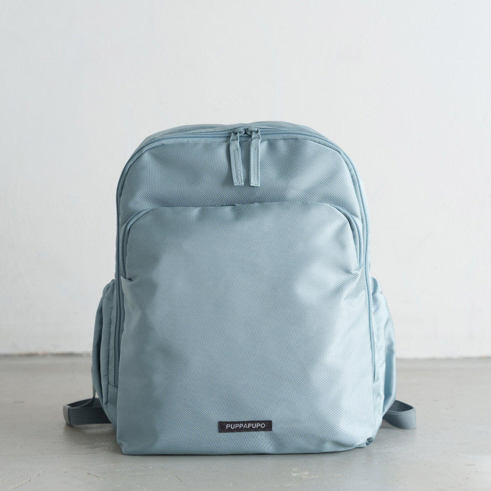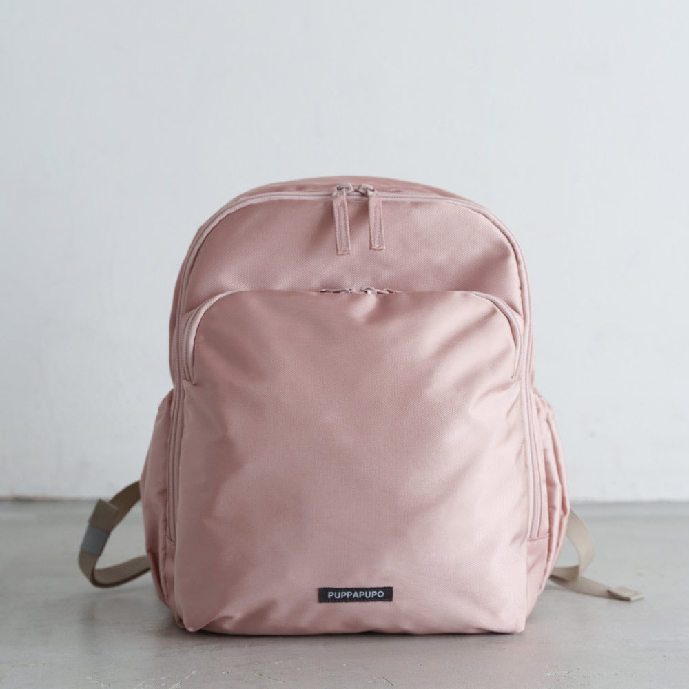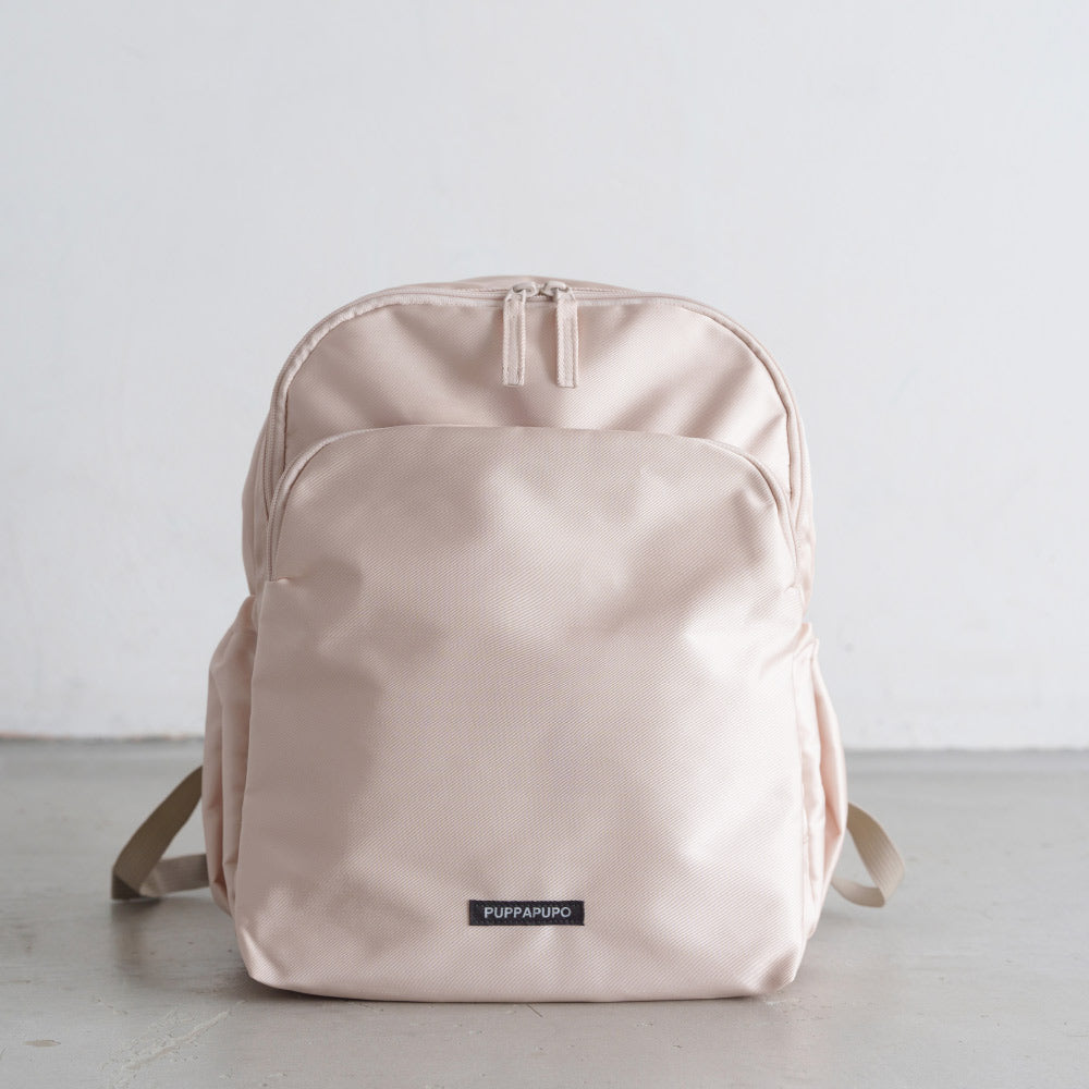 メイン生地は少し光沢のある撥水加工のポリエステル。小雨や軽い泥はねなども弾いて、型崩れやシワになりにくい素材なのでお子様のリュックとして最適です。生地全体は少し光沢のある上品な素材です。※撥水加工は防水ではありません。繰り返しのご使用や効果が薄れた際には市販の防水スプレー等のご使用をおすすめいたします。