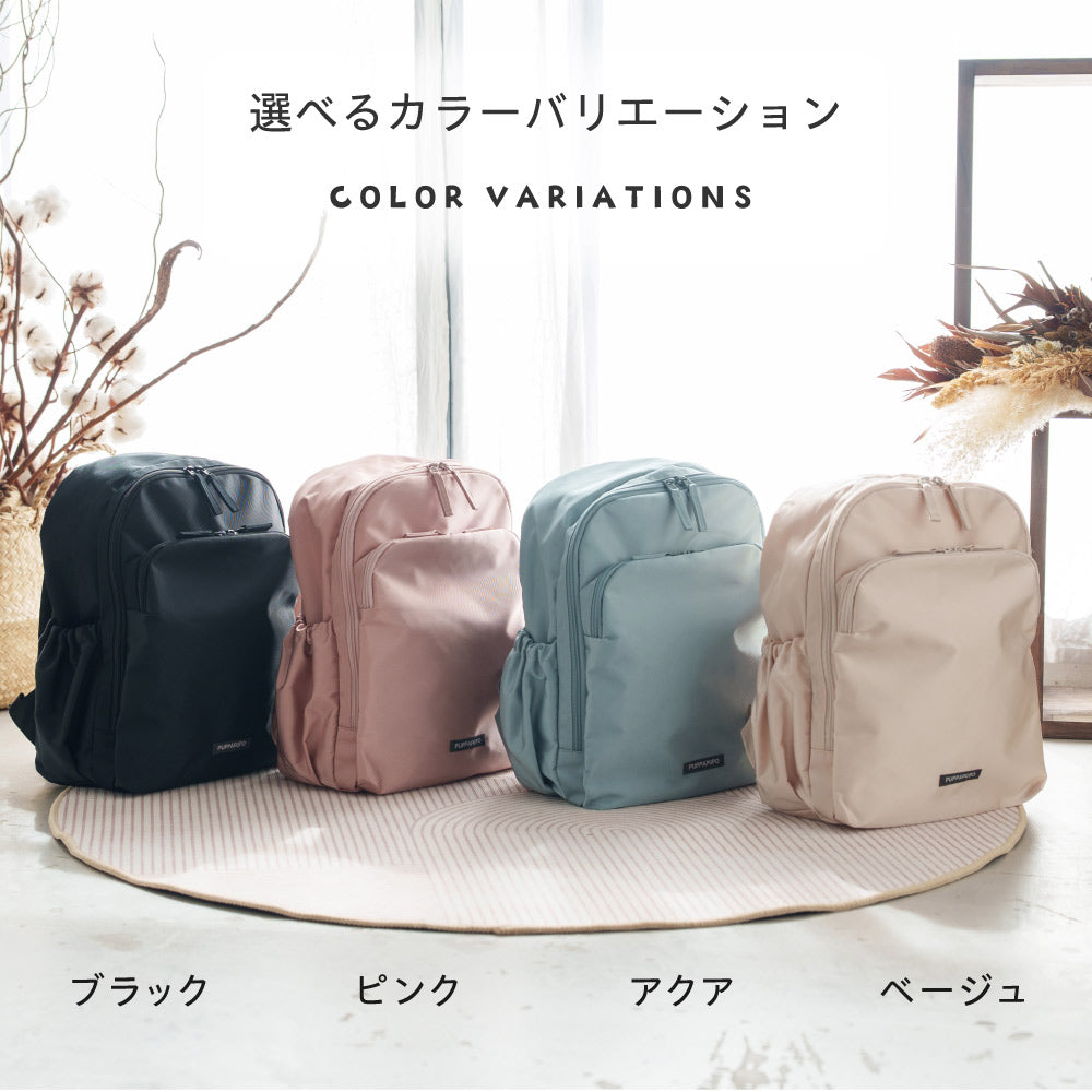 外には大きなサブポケット、飲み物や小物など出し入れしやすいサイドポケット、リュックの中に内ポケットもあります。