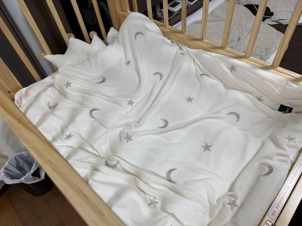 ふんわり優しいパイル生地にあしらわれた小ぶりな刺繍がベビールームをシンプルにかわいく演出してくれます。